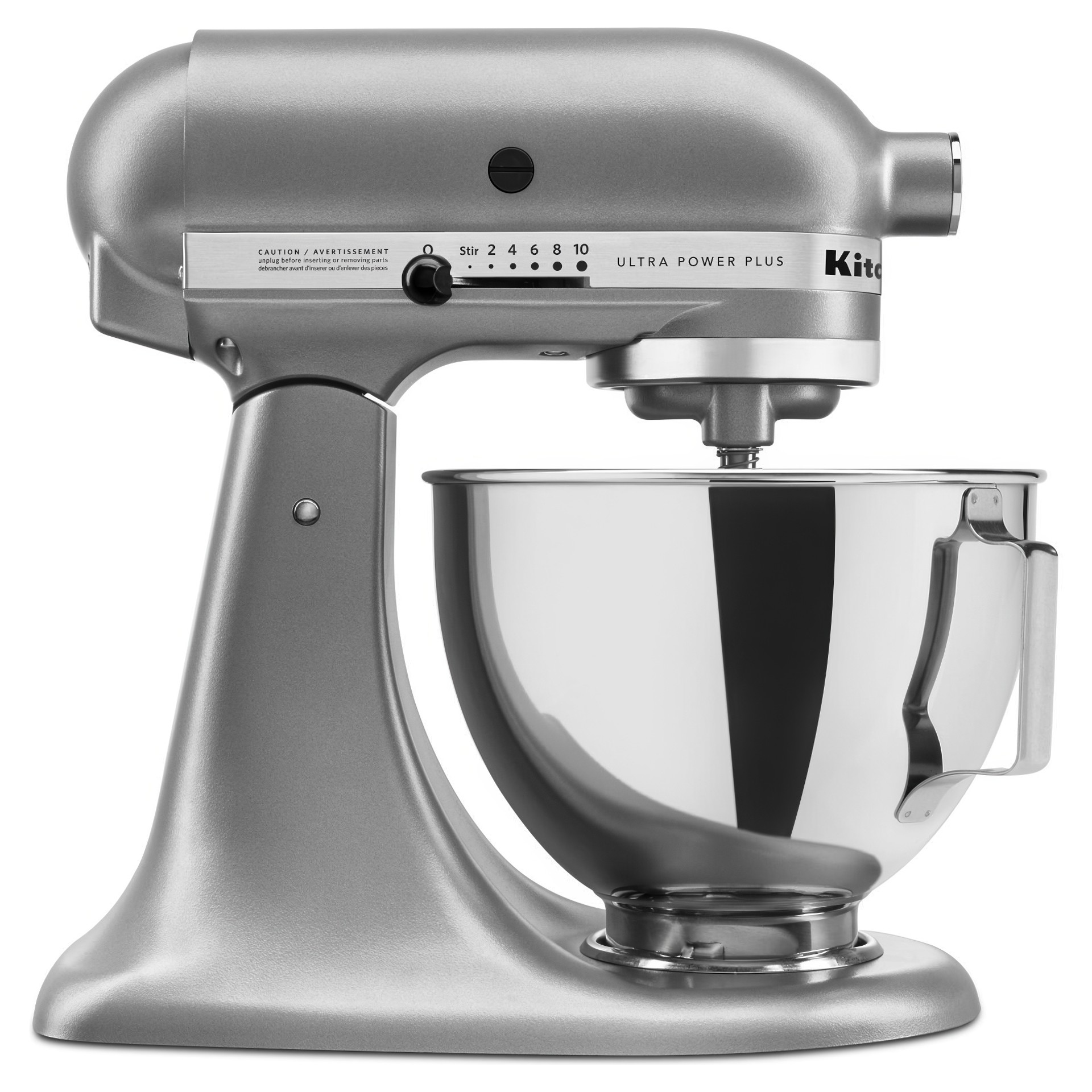 The Ultra Power Plus Series Tilt-Head Stand Mixer with 4.5-quart polished stainless steel mixing bowl and comfortable handle features 10 speeds to easily mix, knead and whip your favourite ingredients.