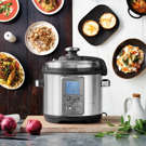 One press functionality employs dual sensors at the top and bottom of the 6 qt. bowl to monitor and accurately control the temperature and pressure. 11 pressure cook settings and slow cook settings from high to low. Reduce, sauté, sear to retain and intensify flavours, slow cook, pressure cook steam to lock in nutrients or keep warm.