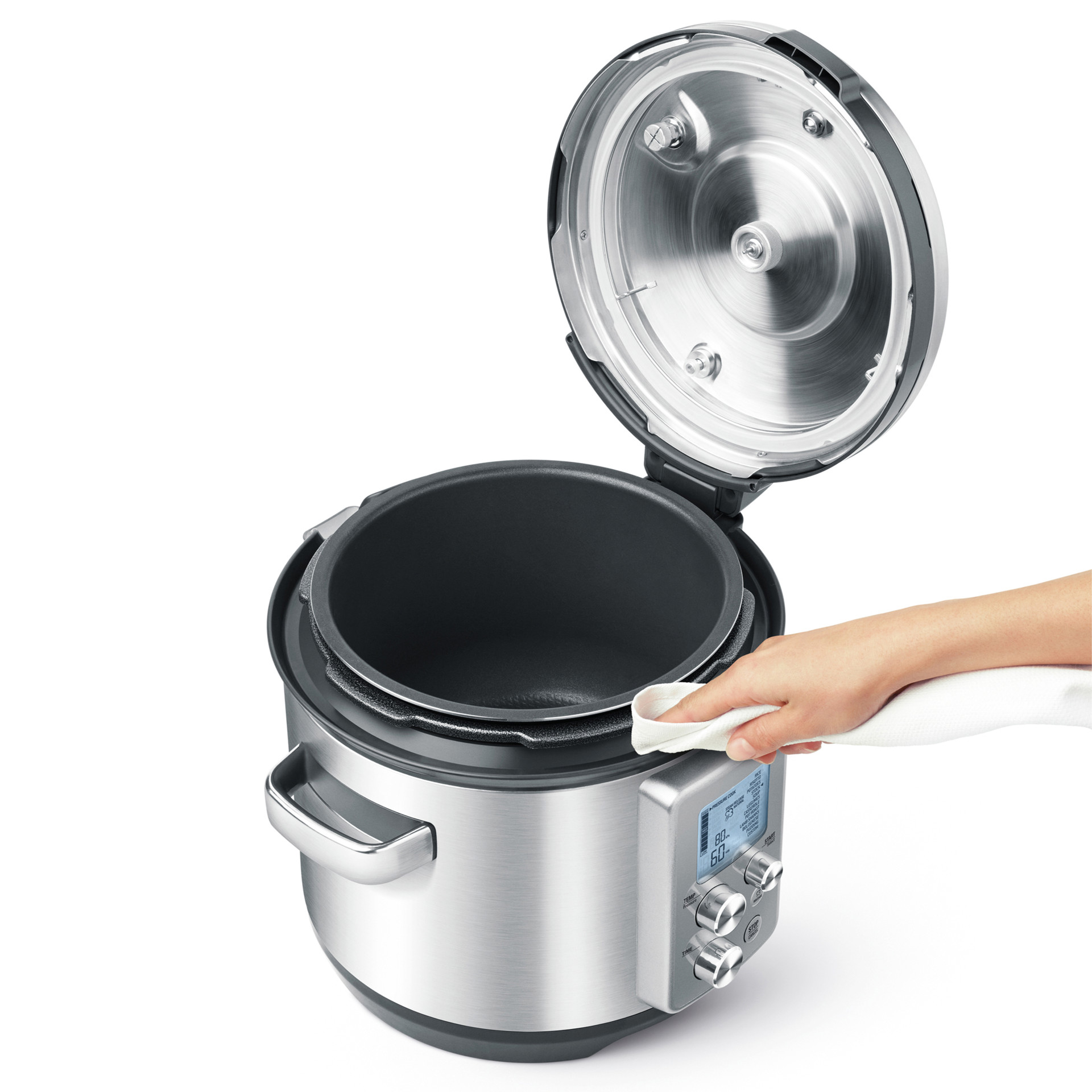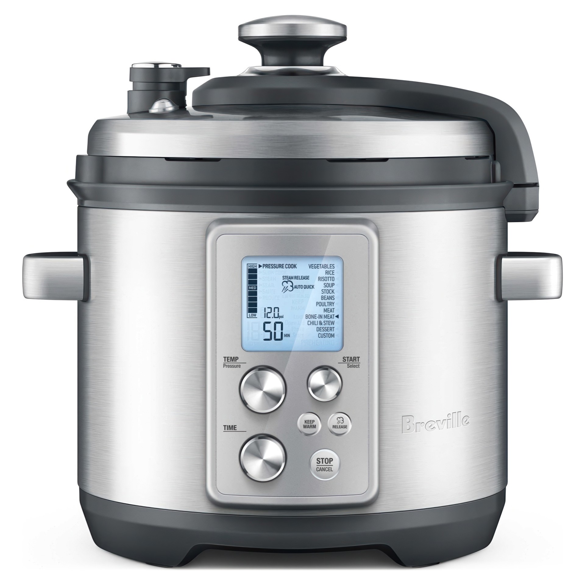 Full feedback LCD display tells you whats going on inside the pot with a pressure indicator, temperature and countdown timer and steam release indicator. 8 pressure levels range from 1.5 psi to 12 psi.