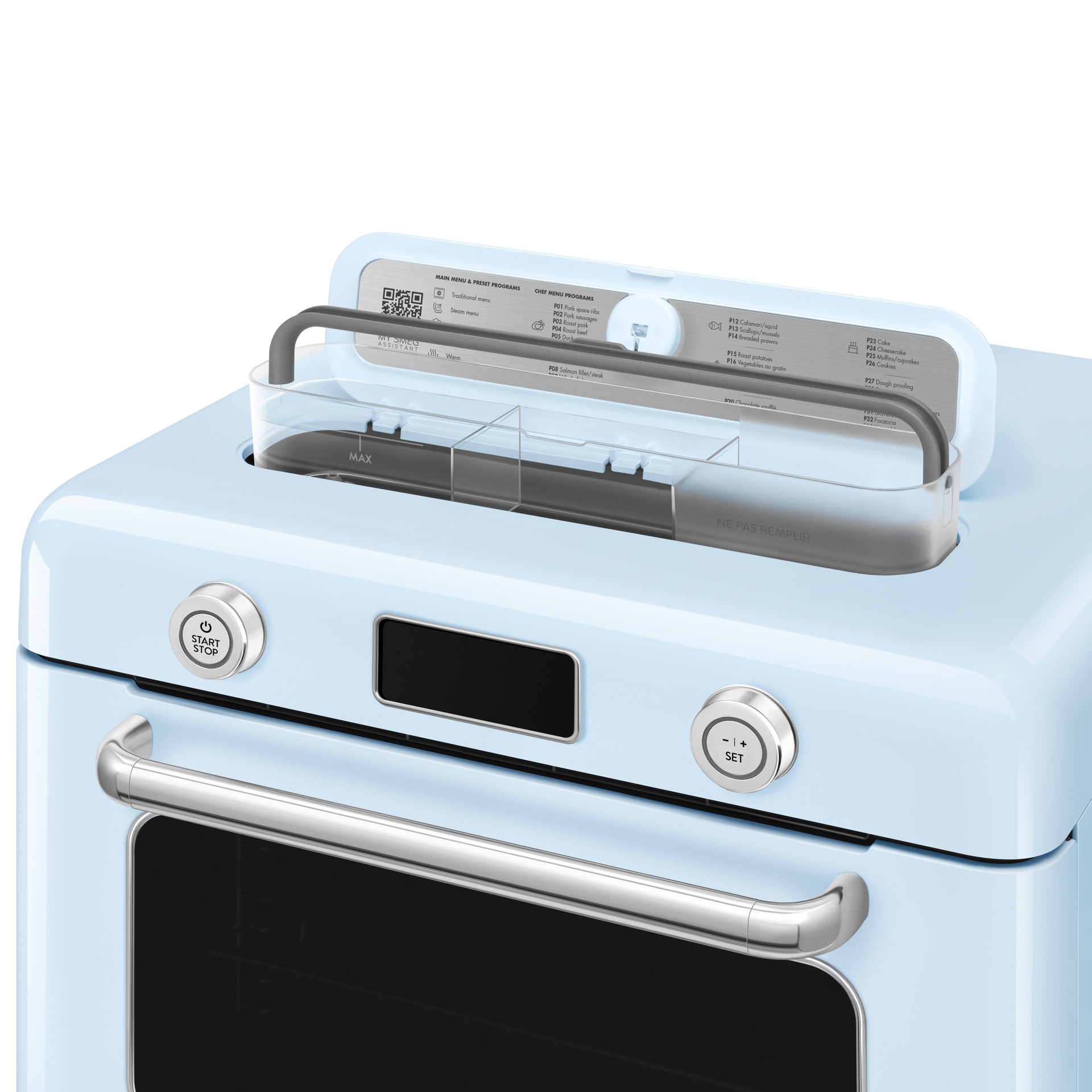 • Steam cooking functions: pure steam, convection steam combination, grill steam combination.