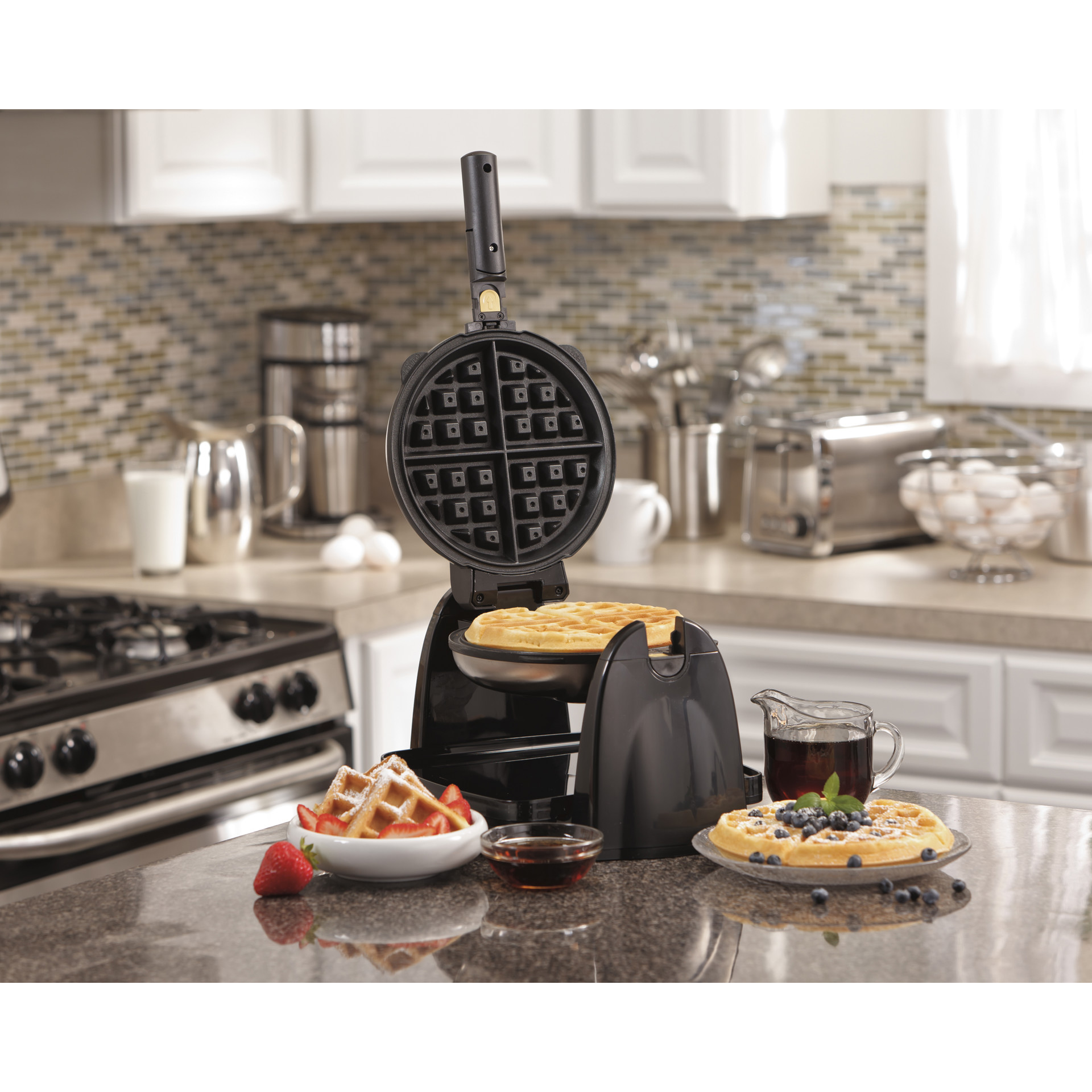 Enjoy fluffy waffles at home with the Hamilton Beach Belgian Flip Waffle Maker.