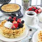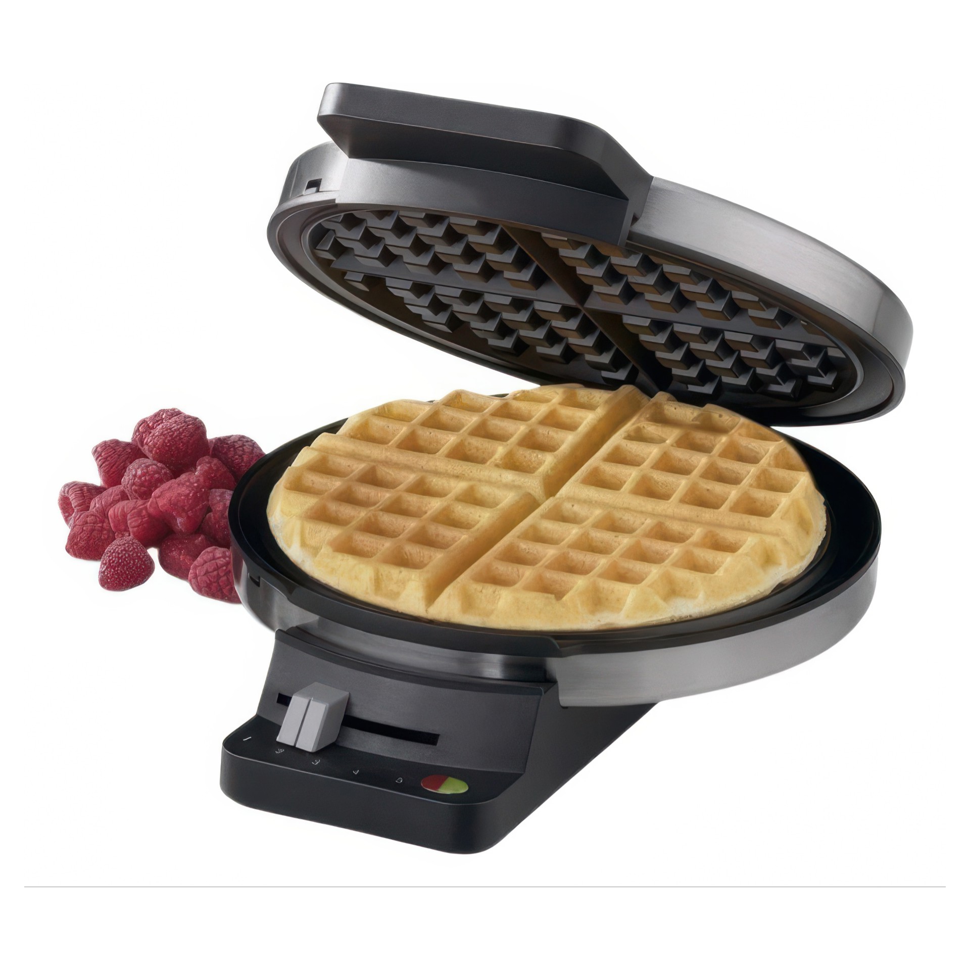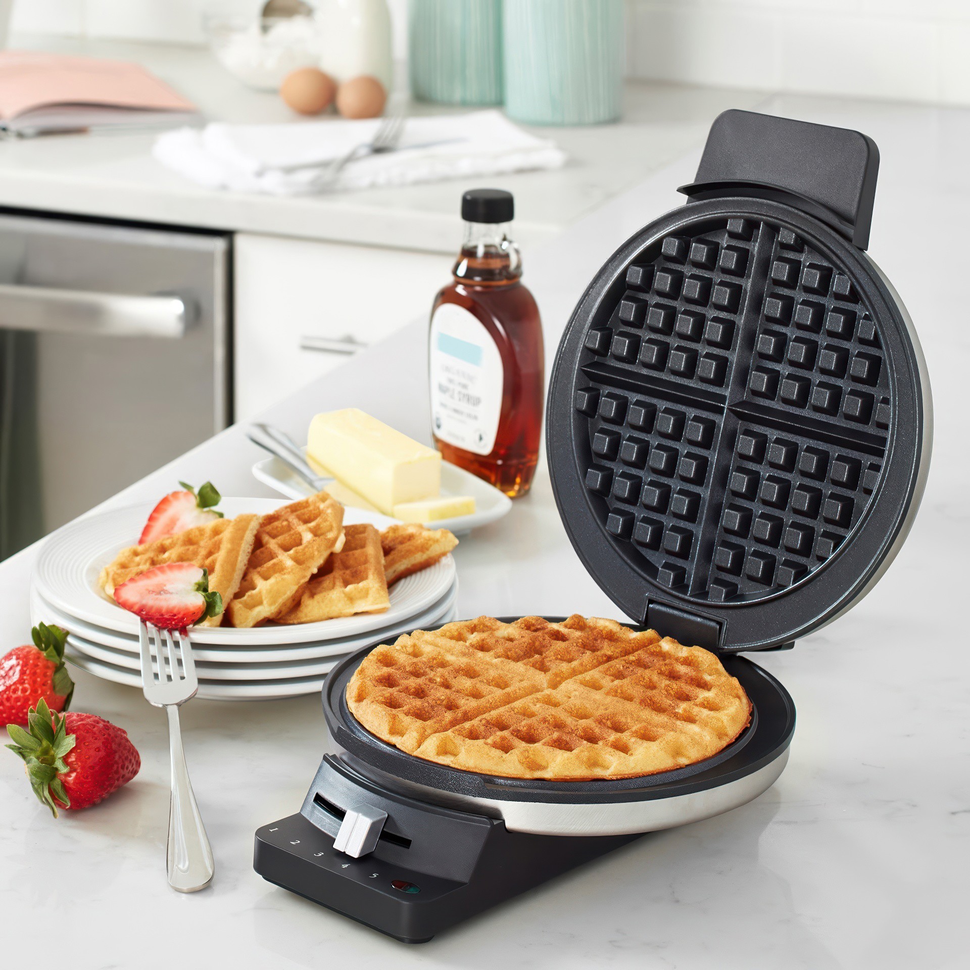 Make delicious waffles quickly and easily with the classic round waffle maker in shiny stainless steel from Cuisinart®.