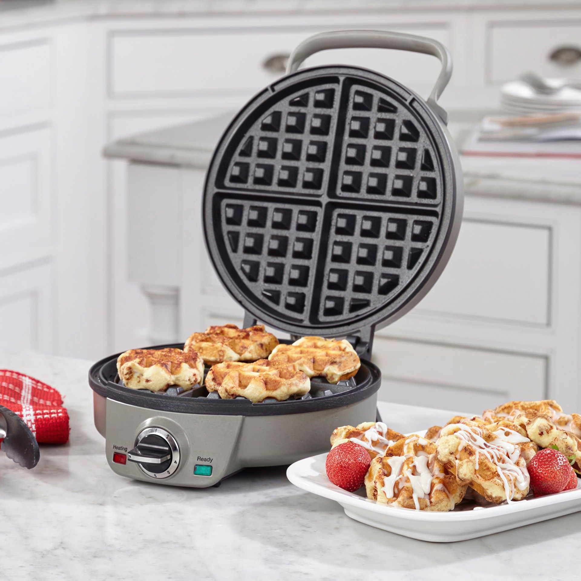 The Cuisinart 4-Slice Belgian Waffle Maker always cooks golden waffles that are crispy on the outside and mouthwateringly tender on the inside. With a stylish brushed stainless steel cover, the waffle iron offers an adjustable temperature control with six browning settings for ultimate control. The result? Precise perfection.