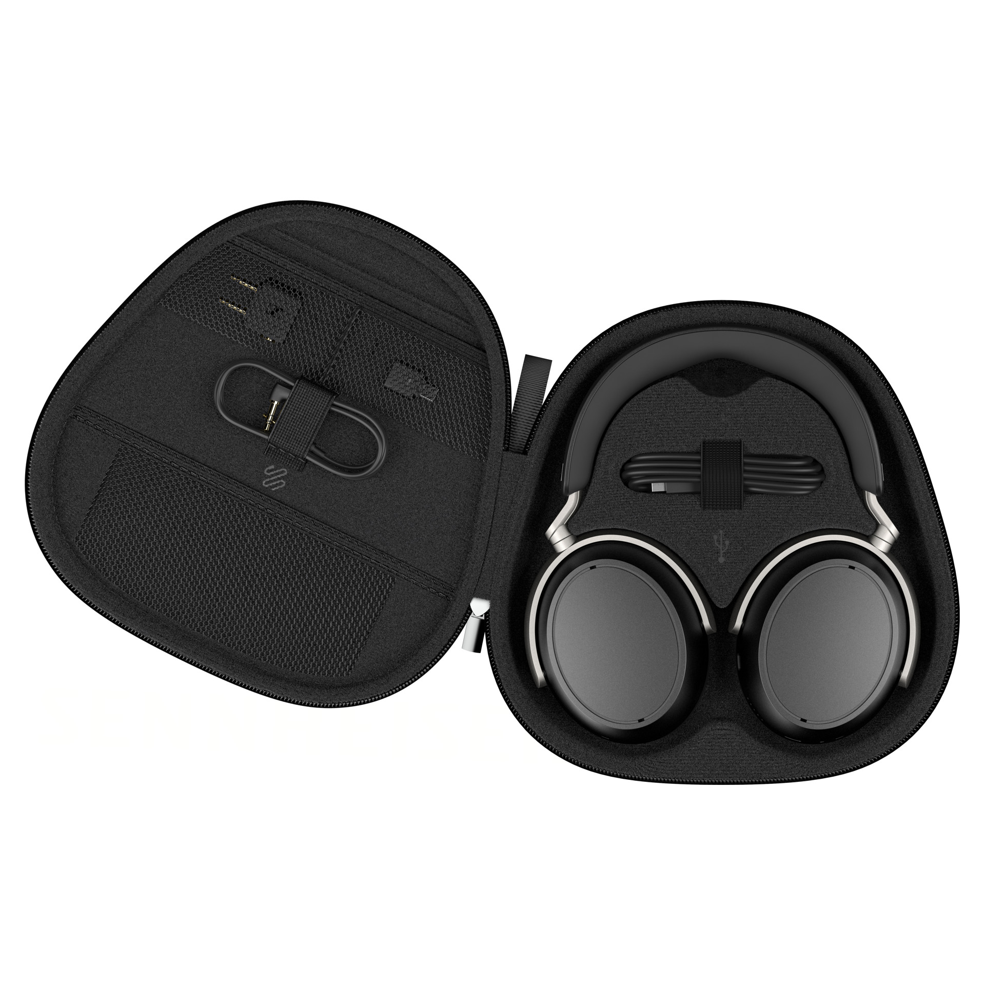 The HDB 630 comes complete with a carrying case, USB-C charging cable, 3.5 mm analog audio cable, airplane adapter, and a USB-C Bluetooth transmitter, crafted by Sennheiser.