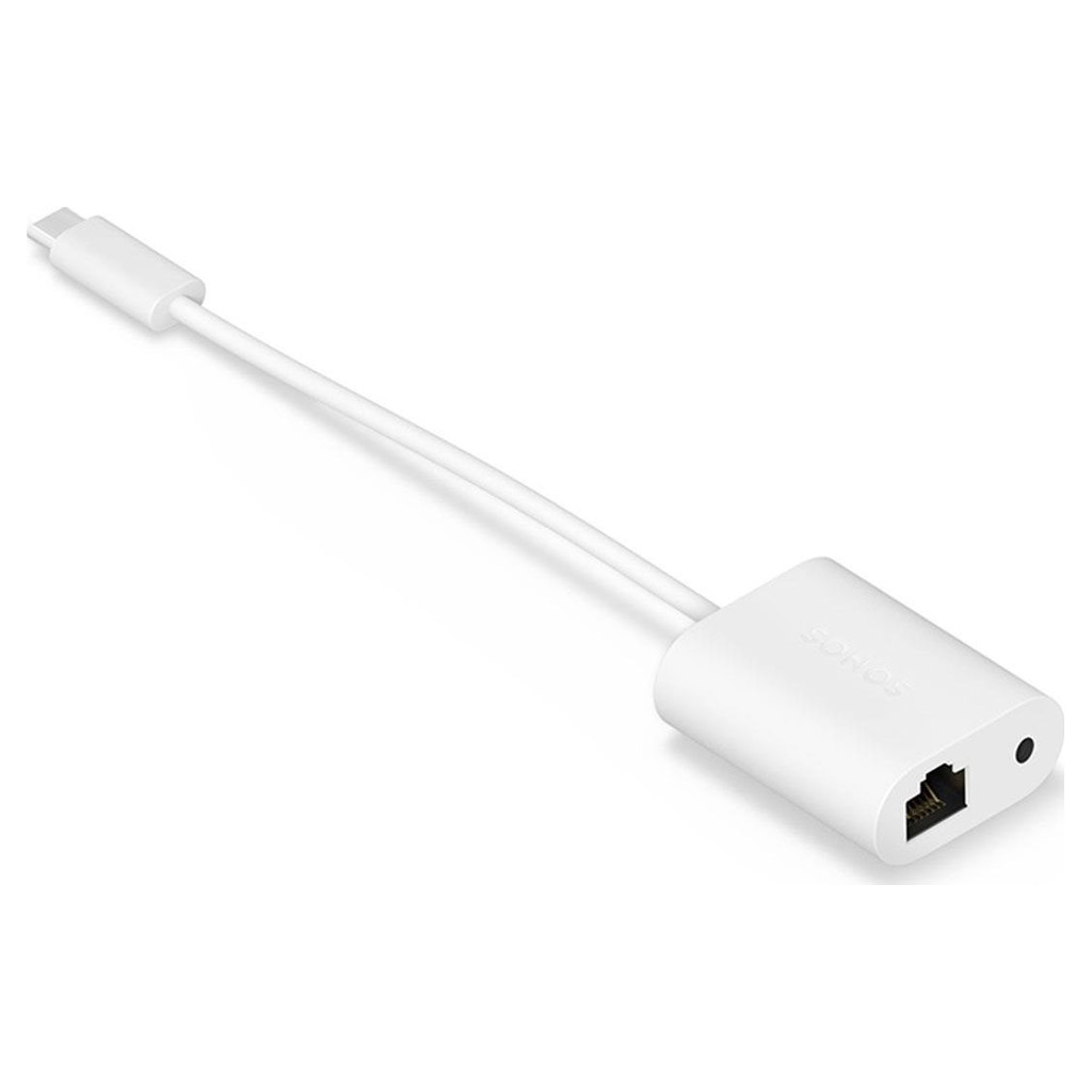 Add audio and networking flexibility to your speaker with this white Sonos combo adapter for Era 100/300 . When this adapter is plugged into the USB-C port on your Era 100 or Era 300 speaker, you gain a female RJ45 Ethernet port and a female 3.5mm port.