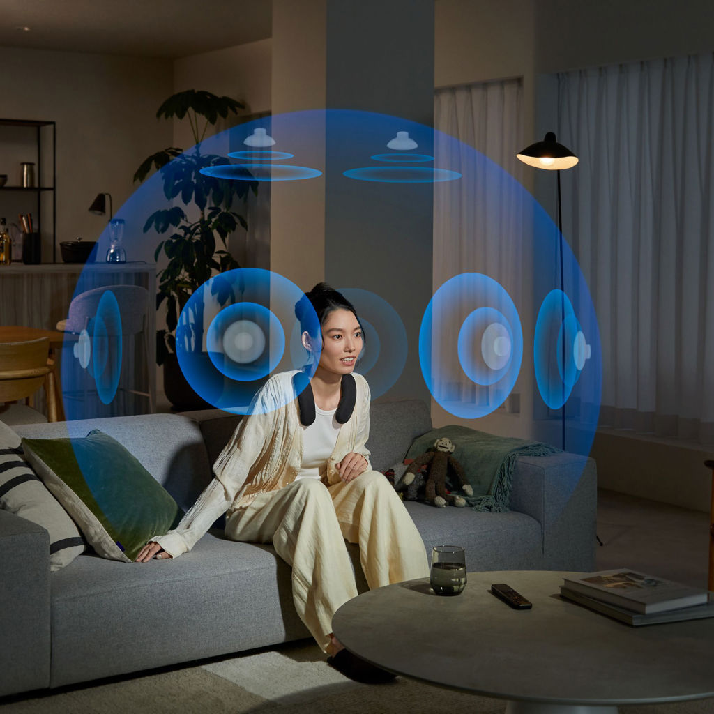 The BRAVIA Theatre U is a personal speaker that immerses you in your movies without disturbing others. Combine our sleek, wireless neckband speaker with Dolby Atmos® and a compatible BRAVIA TV for immersive 360 spatial sound, and enjoy powerful soundtracks and crystal-clear dialogue. You can even pair it with another BRAVIA Theatre U to share the experience.