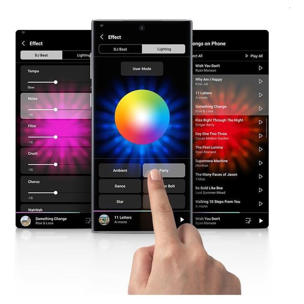 With its many sound modes (party, standard, hip-hop, rock, Latin, etc.) and light effects from the dedicated app, you'll be the DJ on duty.