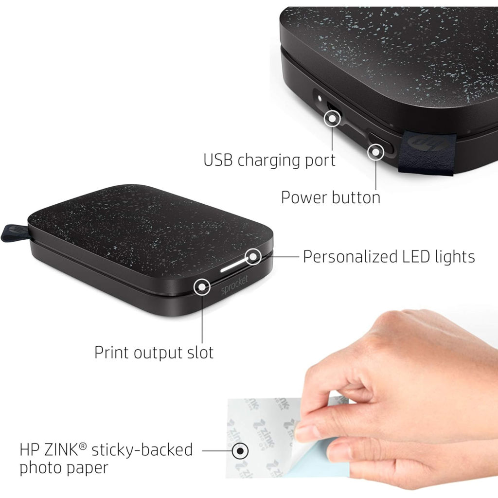 Thanks to innovative ZINK technology, it produces sharp, smudge-free photos with no ink or toner required.