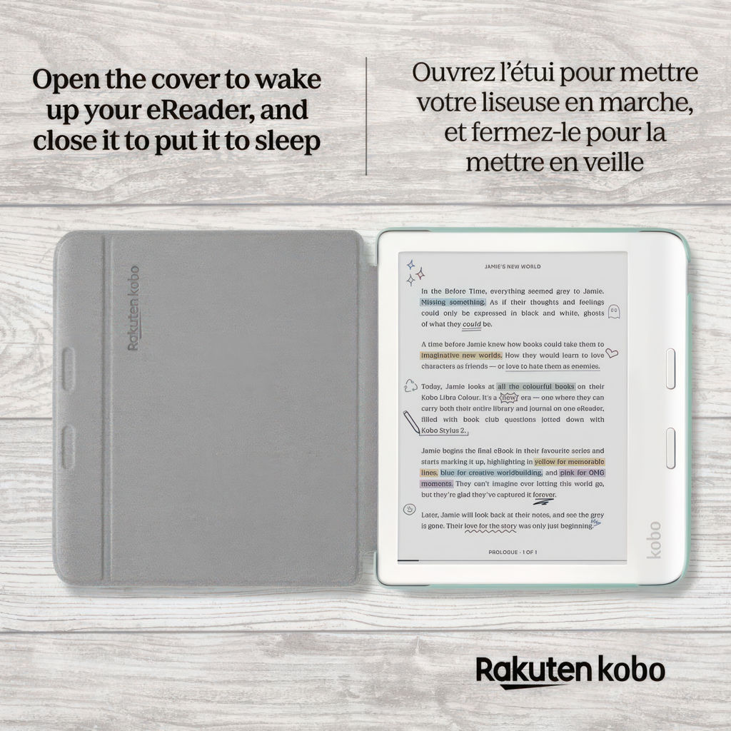We've got your Kobo Libra Colour covered with the Basic SleepCover. Automatically wake your eReader up when you open the cover and put it back to sleep when you close it.