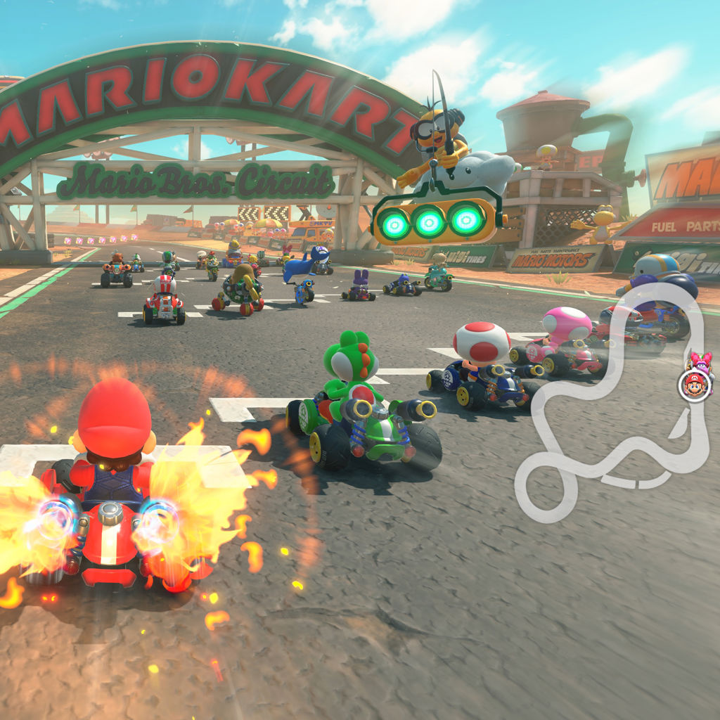 Your circuit stretches across the globe in this massive evolution of the Mario Kart™ series! The tracks you race on are all connected in one seamless world. Drive along the roads between tracks as you pass through mountains, forests, cities, and more. Take in sprawling landscapes at your own pace in Cruise Mode, or experience how a sudden change in weather can turn the tide in a high-stakes Grand Prix.