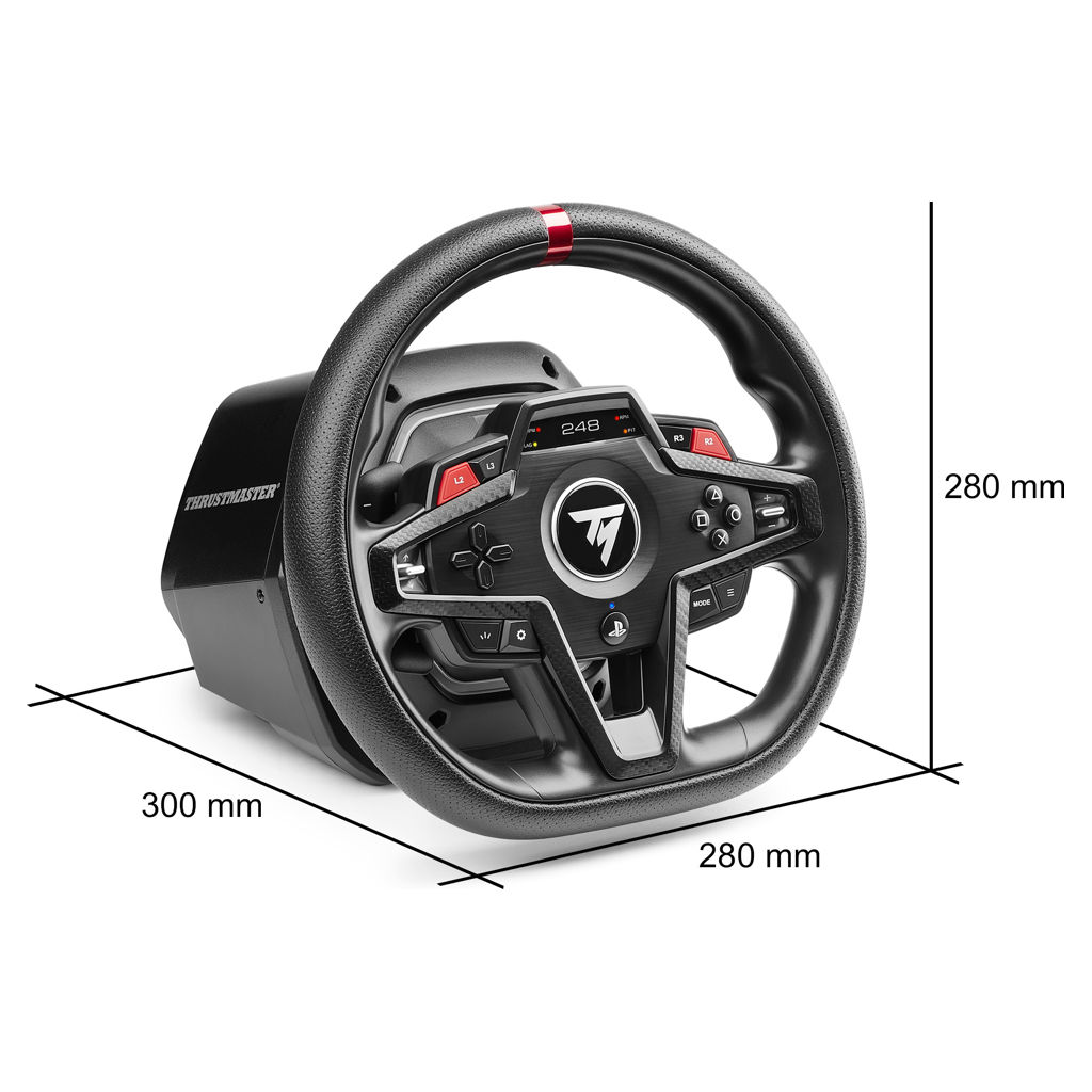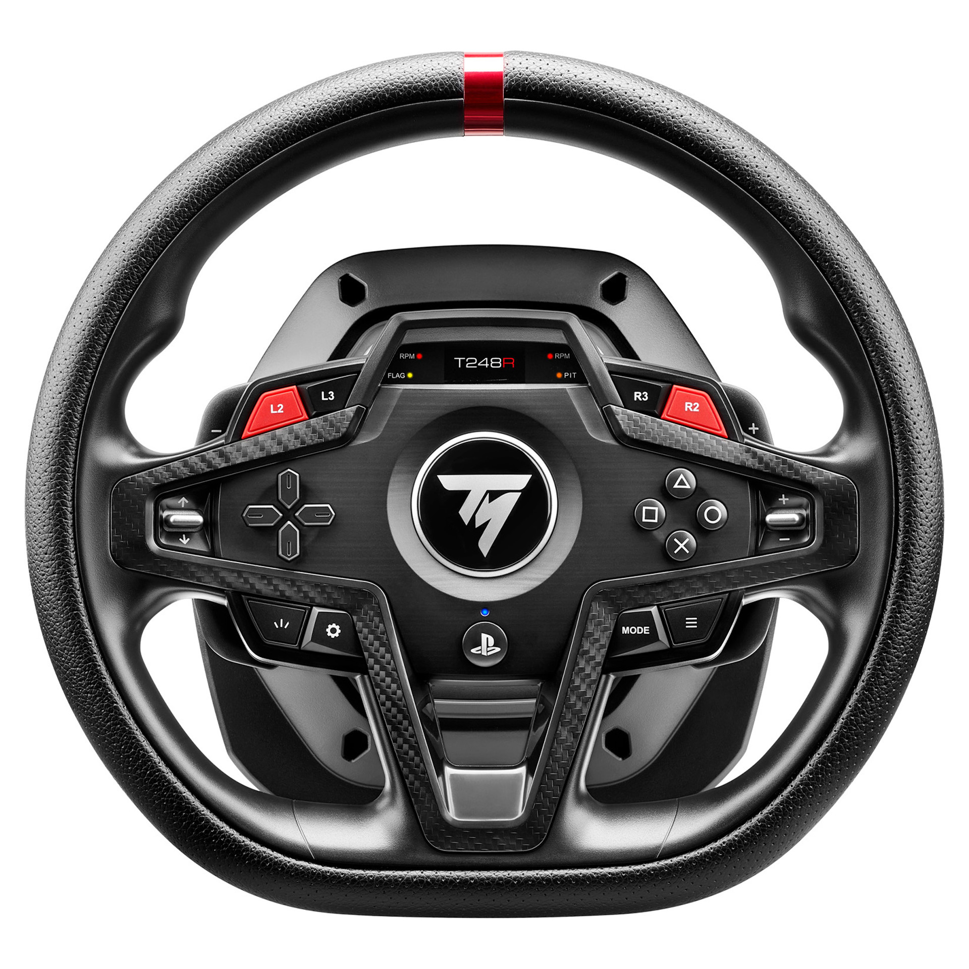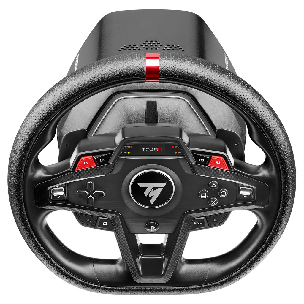 The T248R is an ergonomic 28 cm wheel offering an excellent grip, paired with its magnetic 3-pedal set for a complete and immersive driving experience. It serves as an ideal all-in-one solution suitable for all driving styles and player profiles.