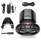 The versatile all-in-one racing wheel, featuring a T-HD hybrid force-feedback system delivering 3.1 Nm of torque, comes with a 3-pedal set. It includes a next-generation interface with a color LCD screen and LEDs, and stands out with its new sporty design.