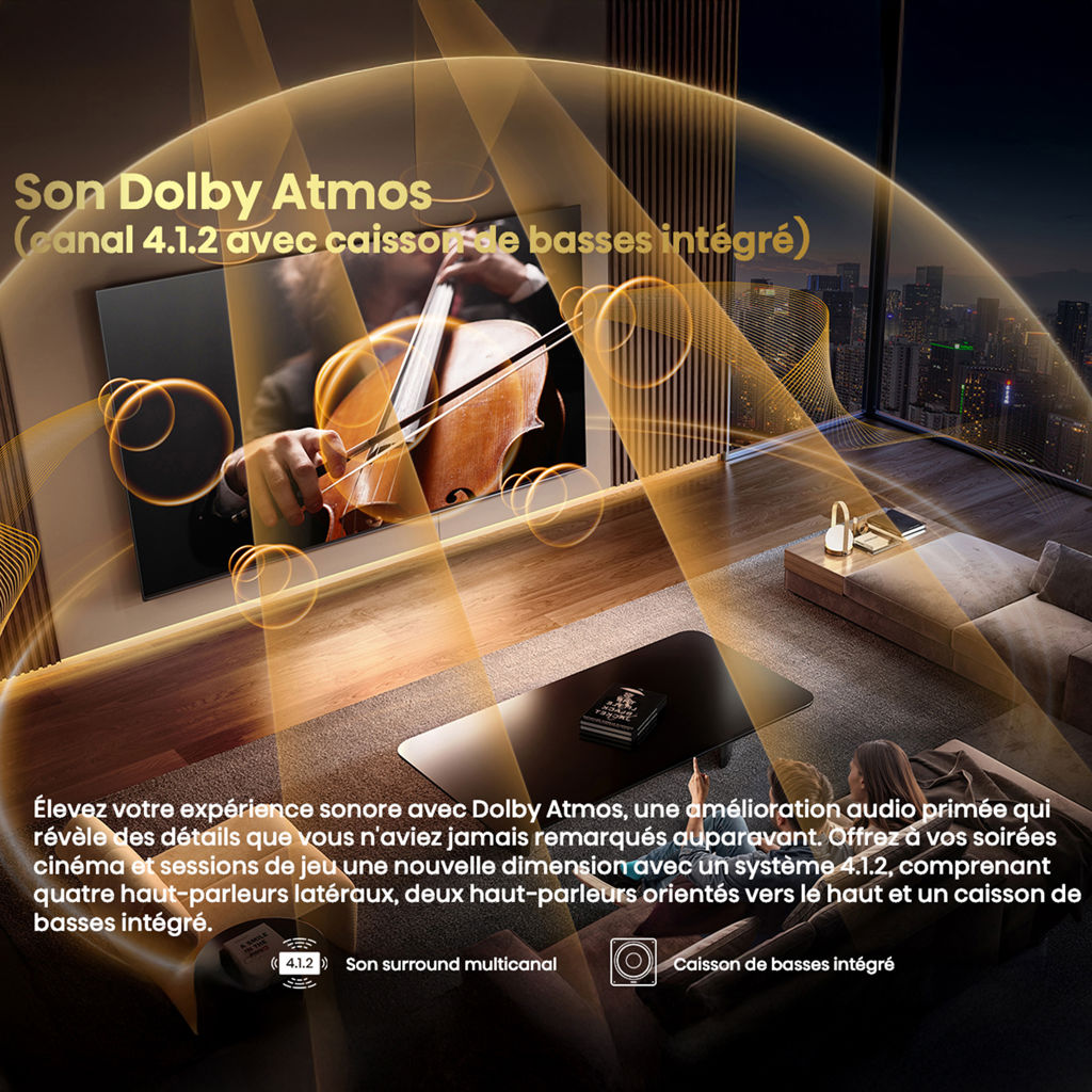 Dolby Atmos Sound (4.1.2 channels with subwoofer)