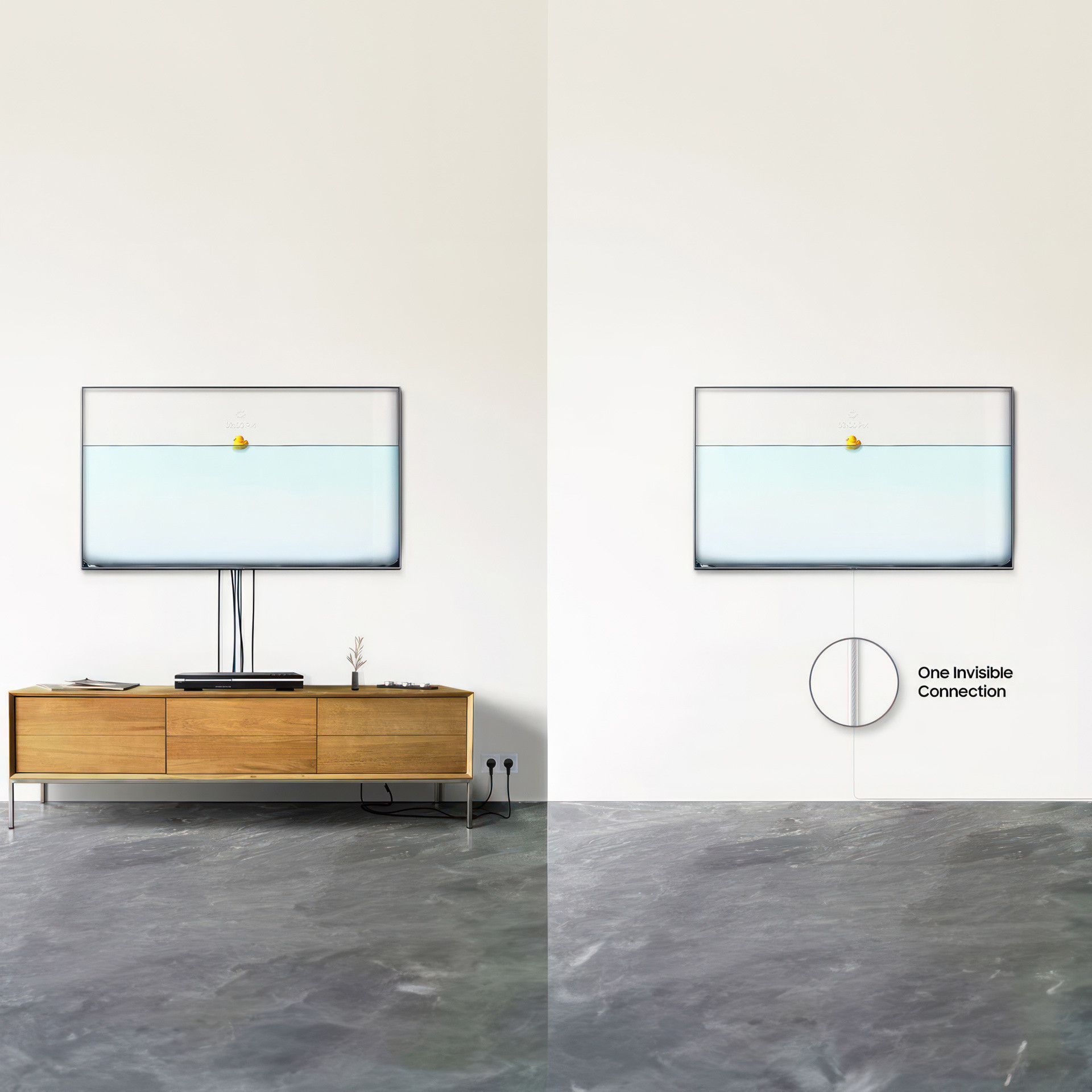Samsung One Invisible Connection minimizes clutter and uses a single cable to connect your TV to a variety of sources, including the power cable.