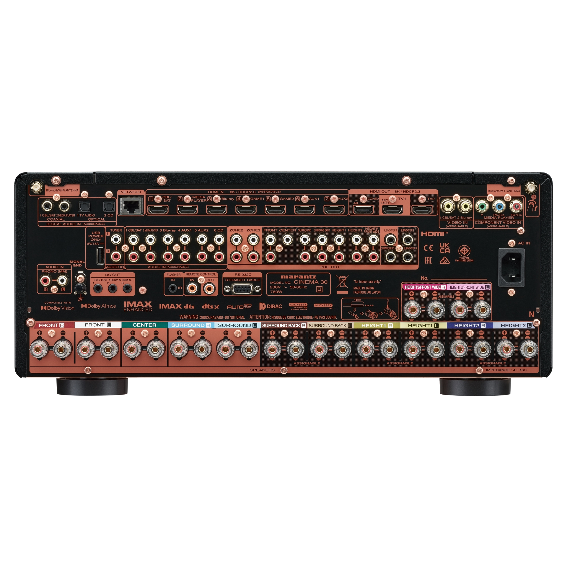 Dolby Atmos, Dolby Atmos Height Virtualization Technology, DTS:X and DTS Virtual:X, IMAX Enhanced and Auro-3D processing are all supported so you can listen to all your favourite audio styles.