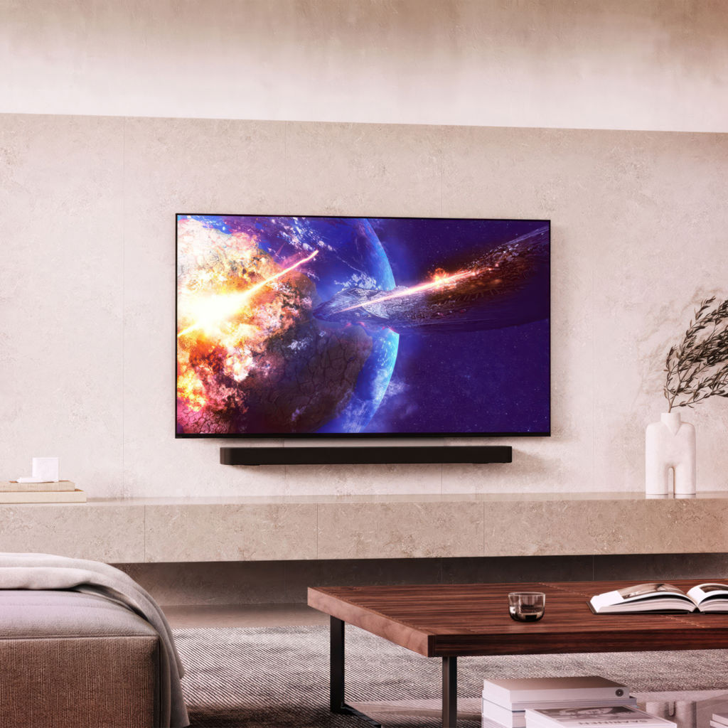 The compatible sound bar bracket (ptr 852726), sold separately, lets you wall-mount your TV and sound bar at the same time. They adapt to the wall, swivel in unison and complement each other perfectly.