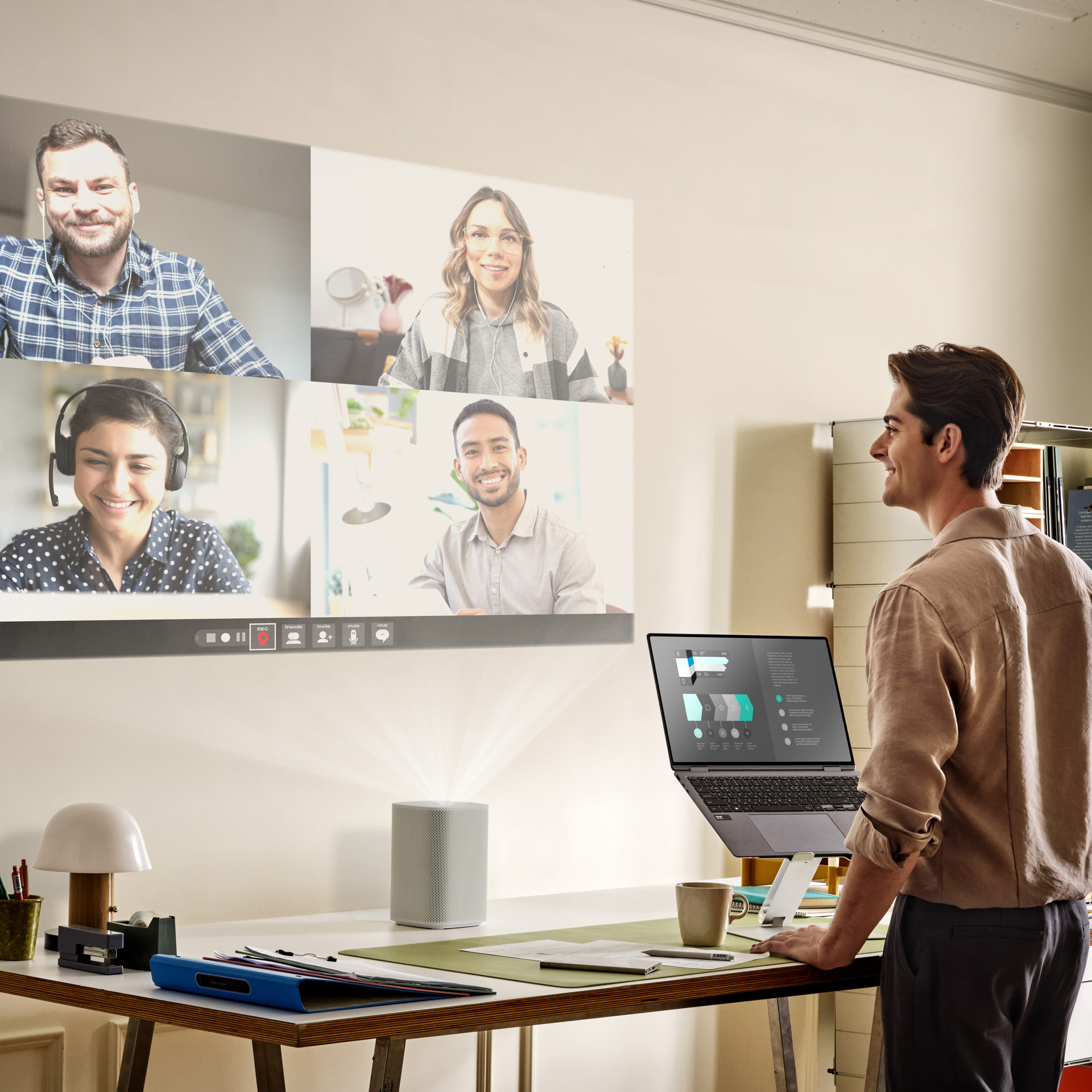 Just connect the Touch Stand to enjoy interactive touchscreen projection. Tap around where you've projected on a counter, desk or dining table, and easily navigate your work and play. Use your finger to select the game you want and interact with it, like moving around the pieces in a puzzle.