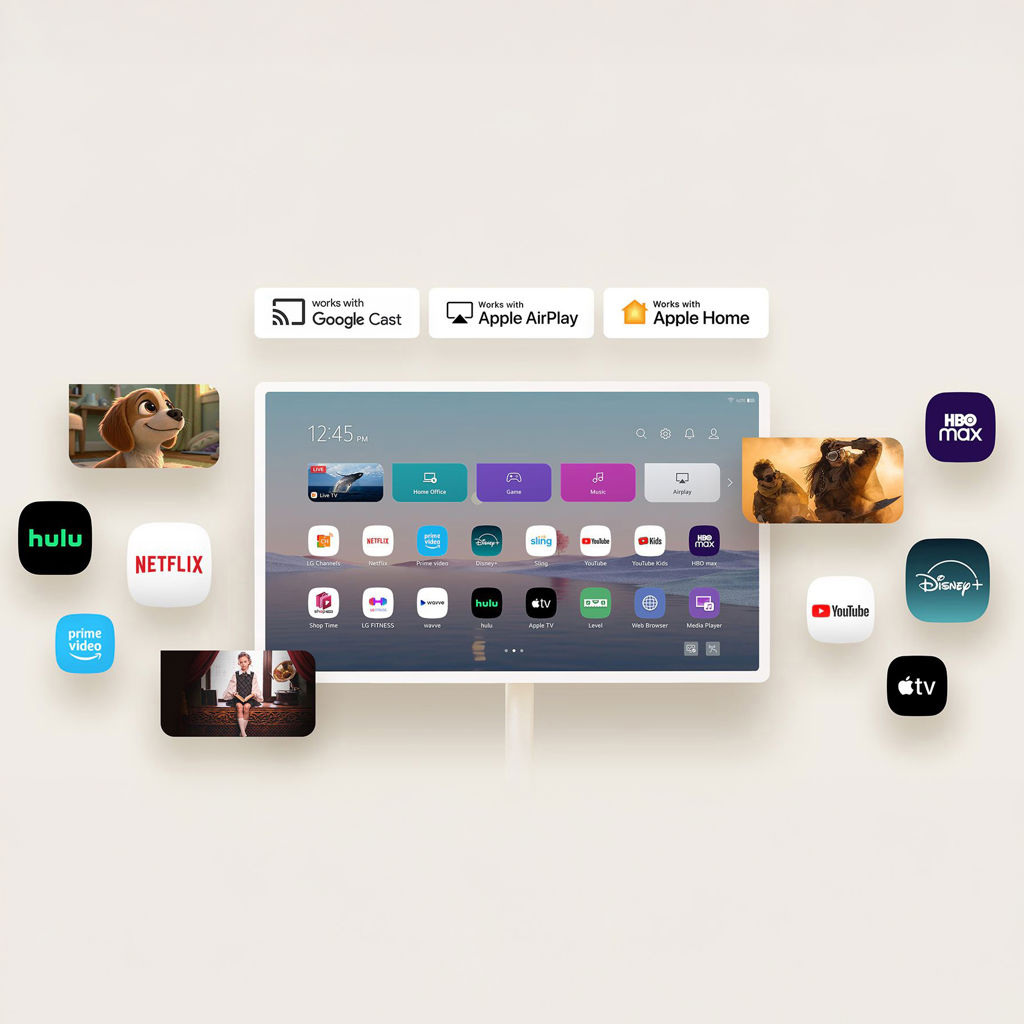 Access your favorite content and streaming services without needing a smartphone. Use built-in OTT apps or stream directly from iOS and Android devices via AirPlay and Google Cast.