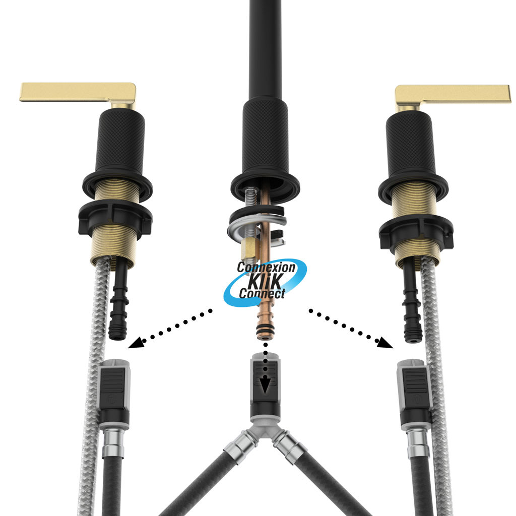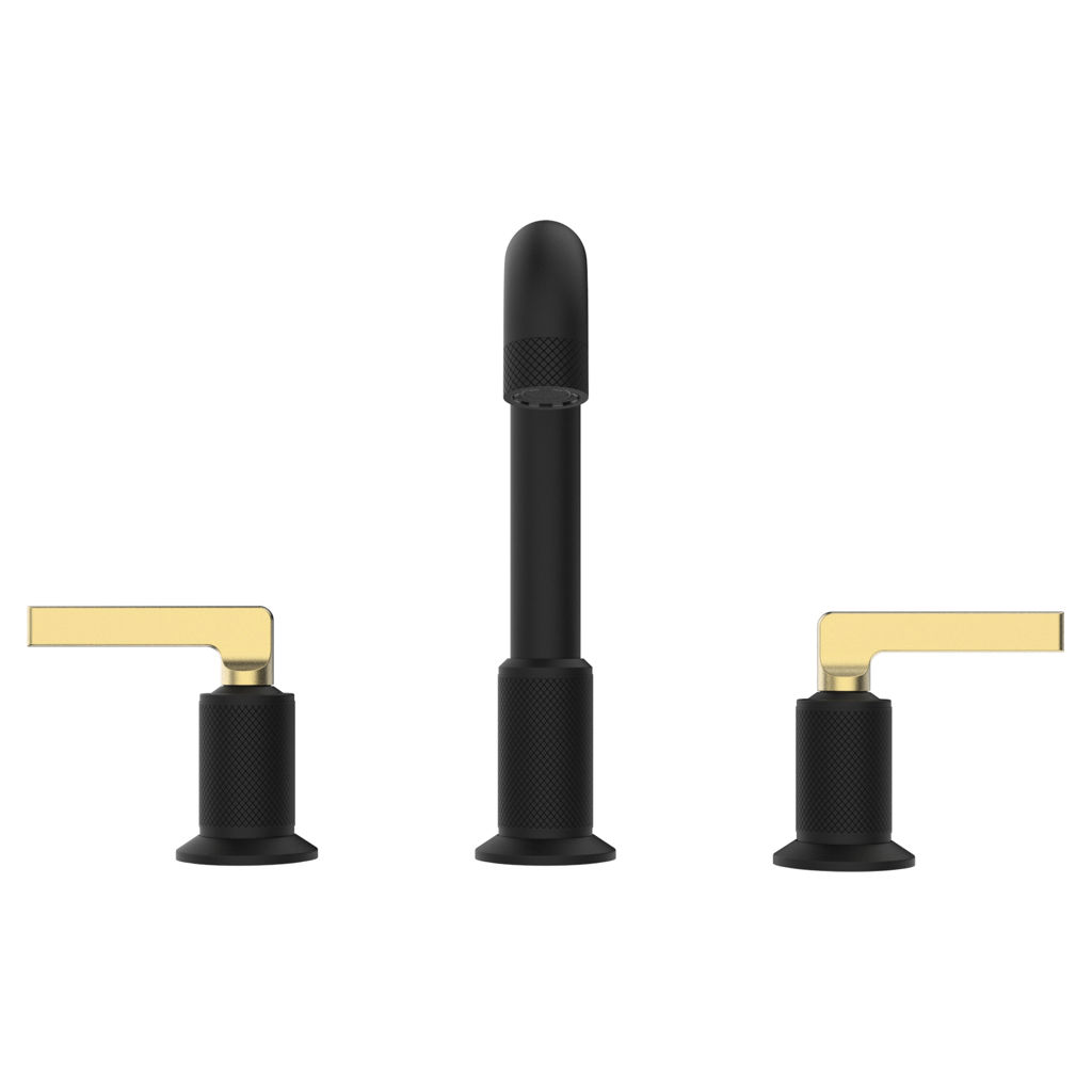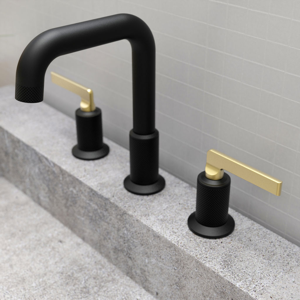 Its geometric lines end with finesse thanks to well-studied curves, creating the perfect industrial faucet with knurled accents, available for single hole, wide spread and centered installation.