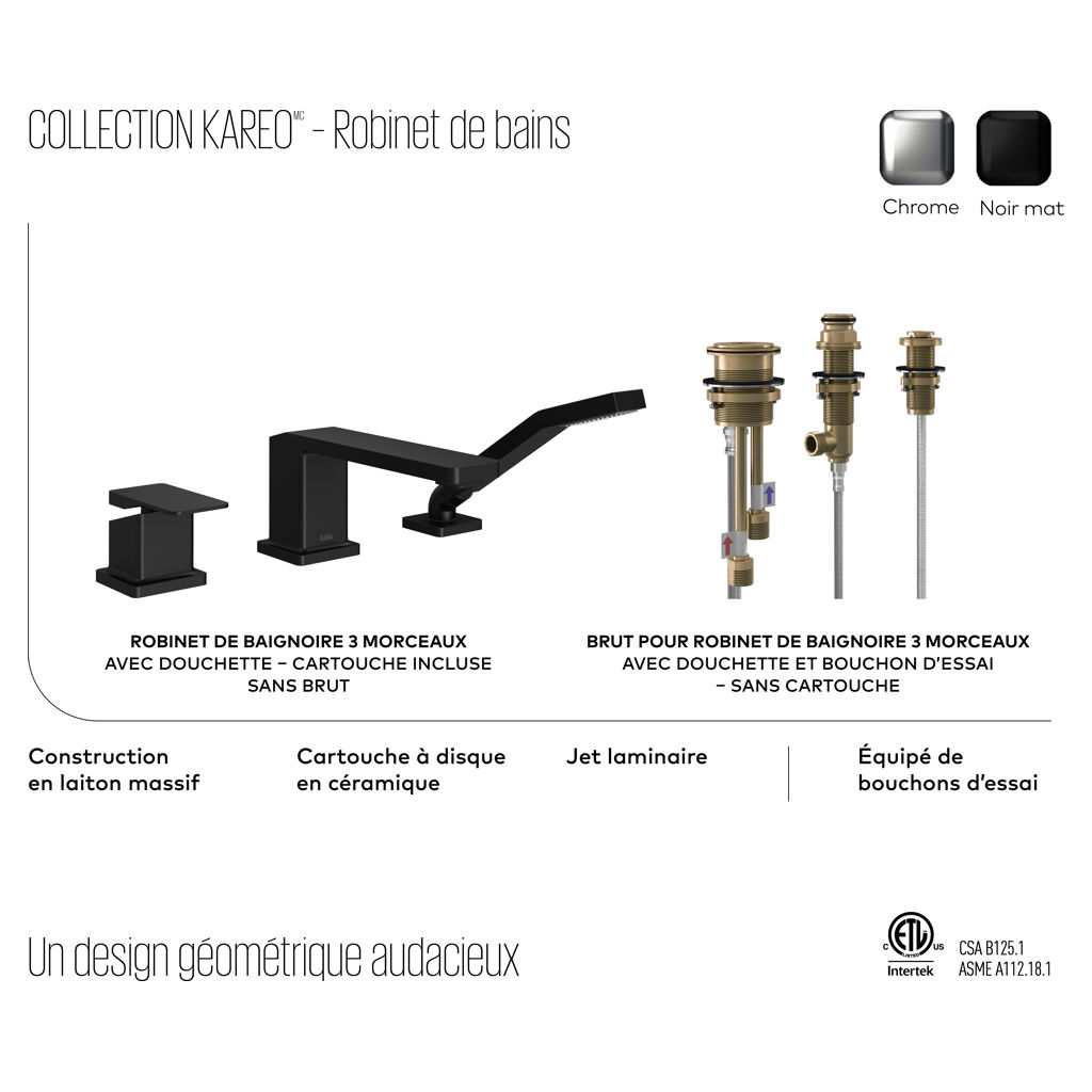 Kareo 3-pc Bathtub Faucet with Handshower Cartridge Included with Rough-in - Chrome Kalia BF1979-110