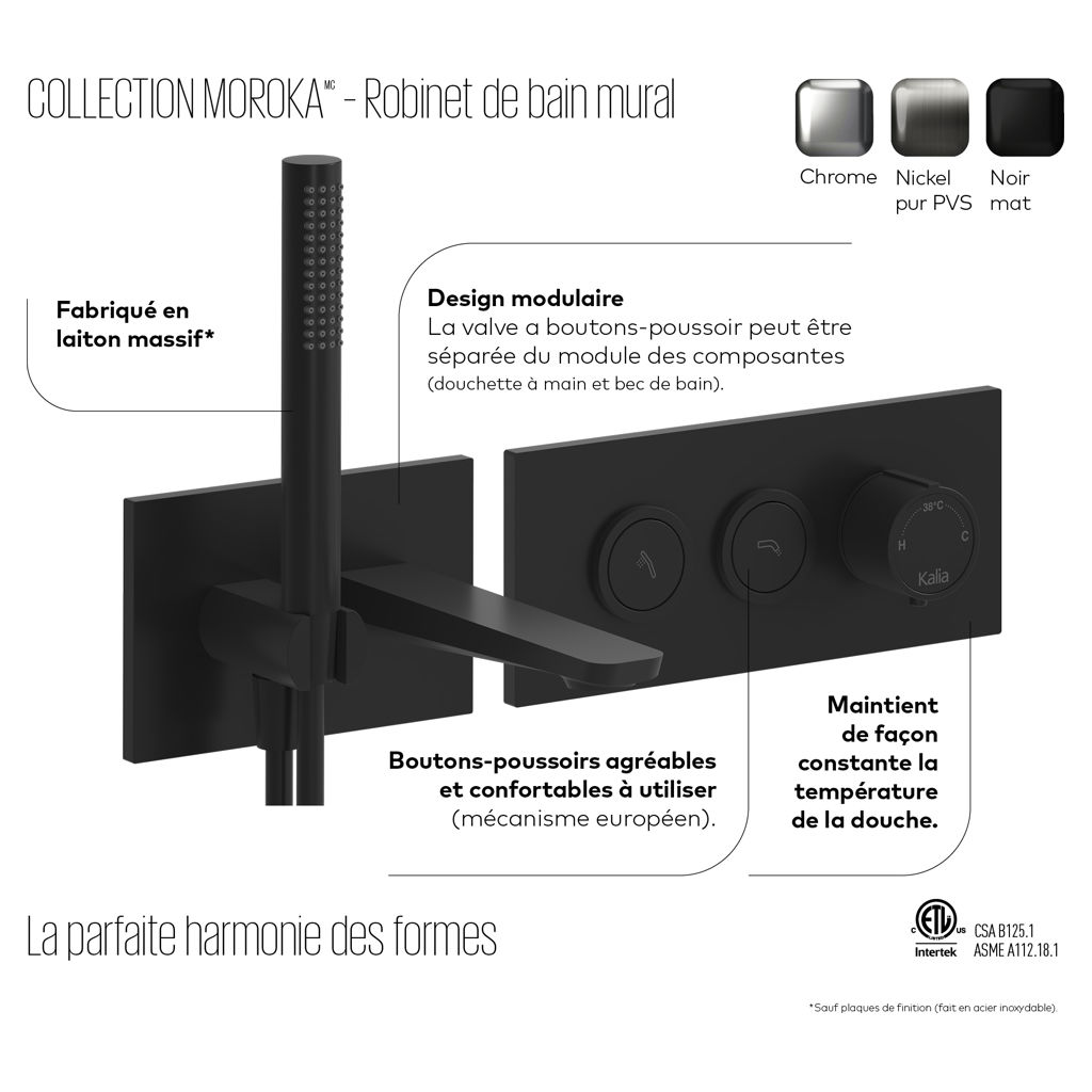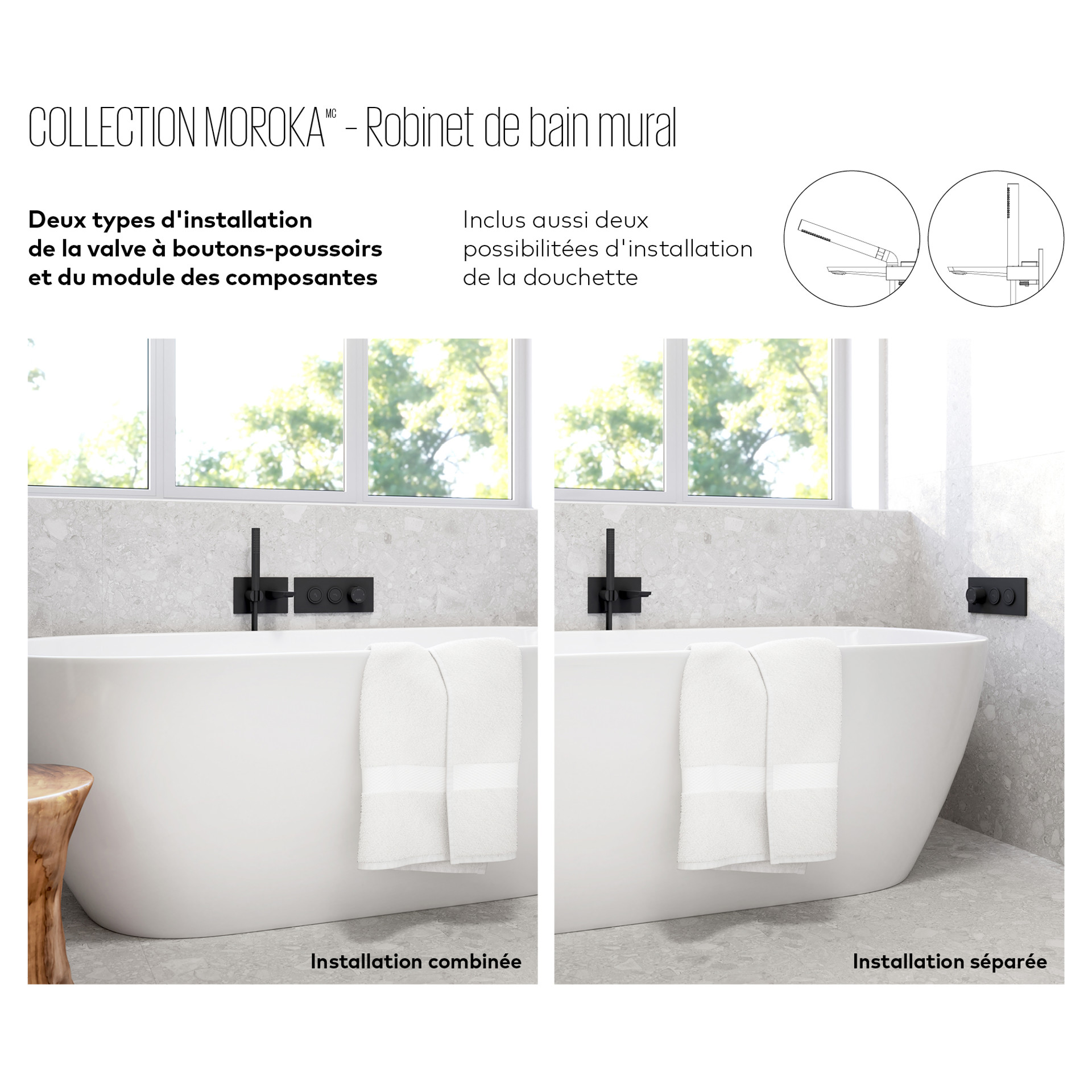 Moroka thermostatic wallmount tub filler with 2-way aquatoniktm