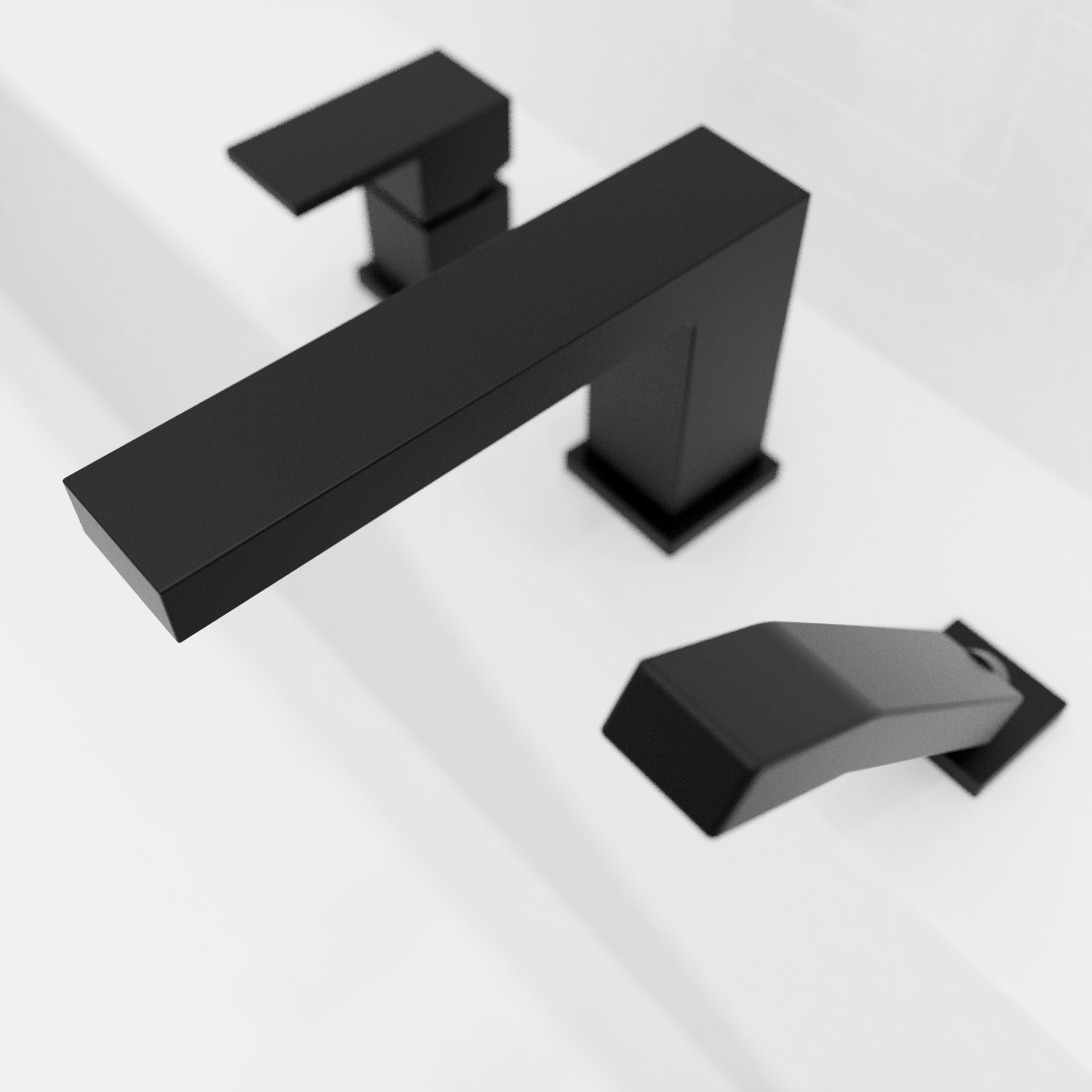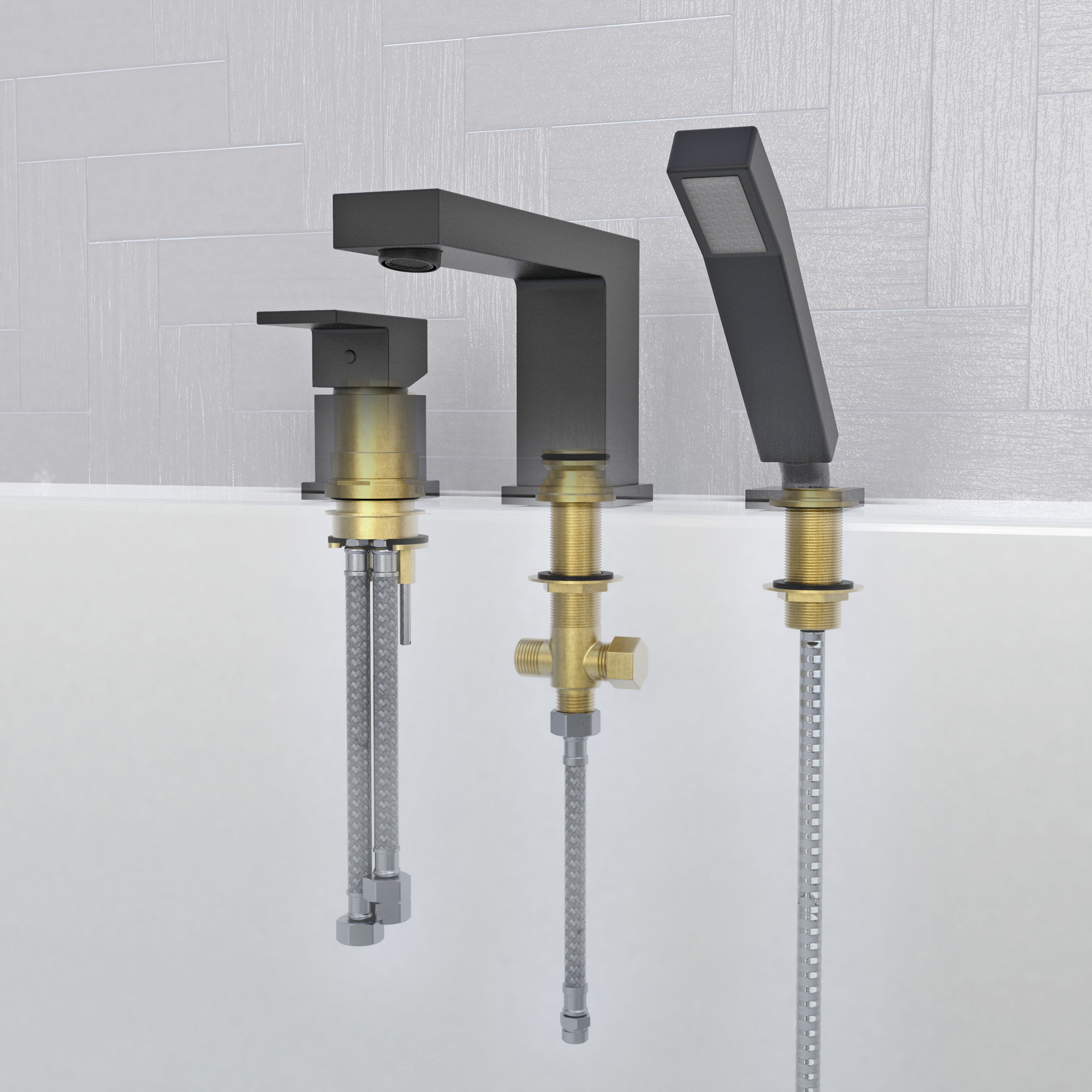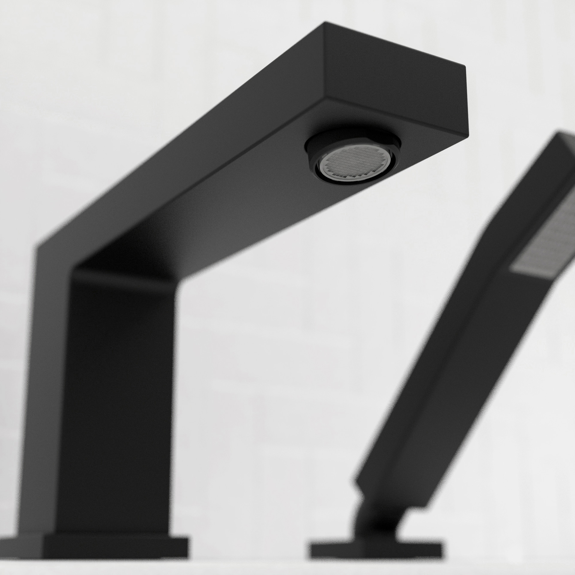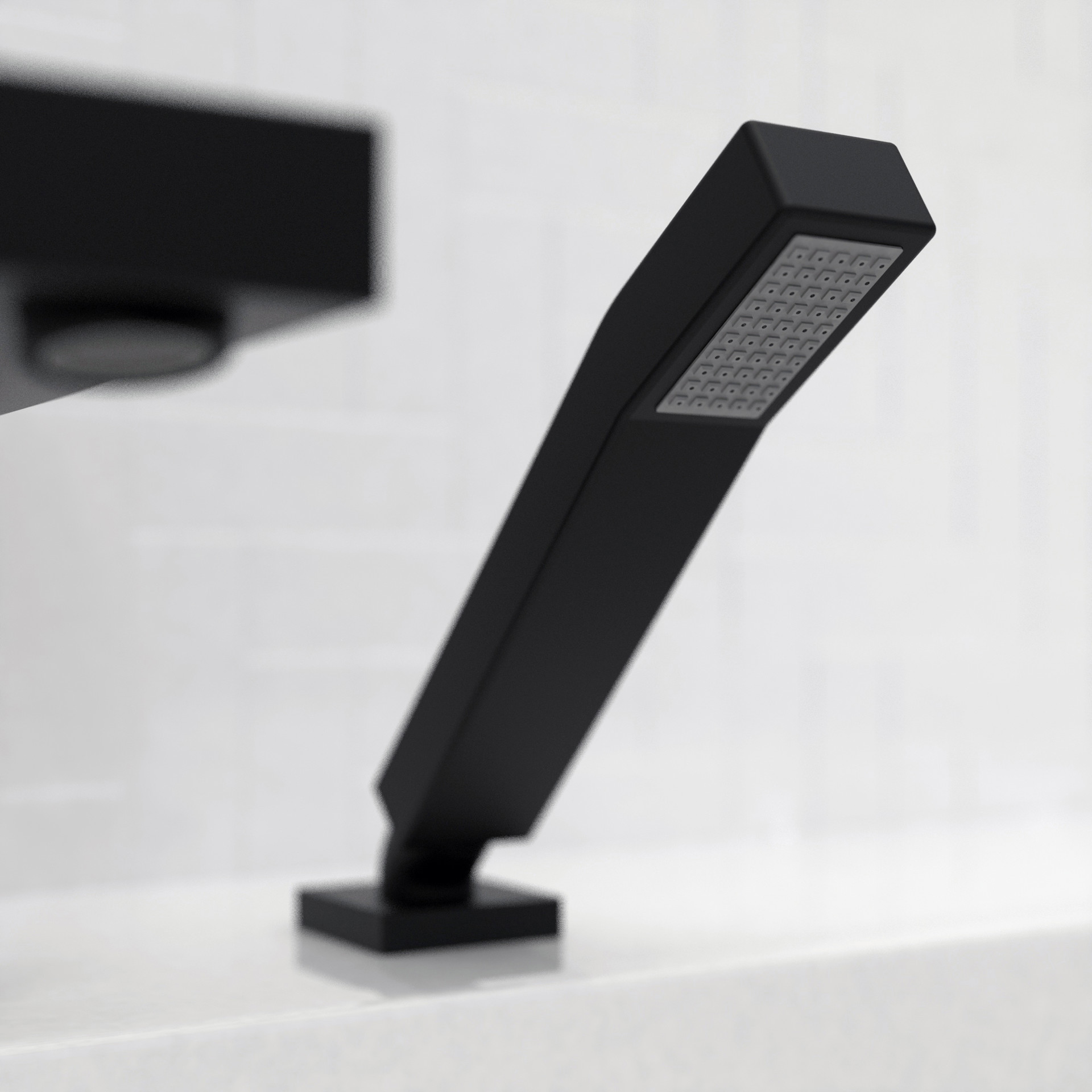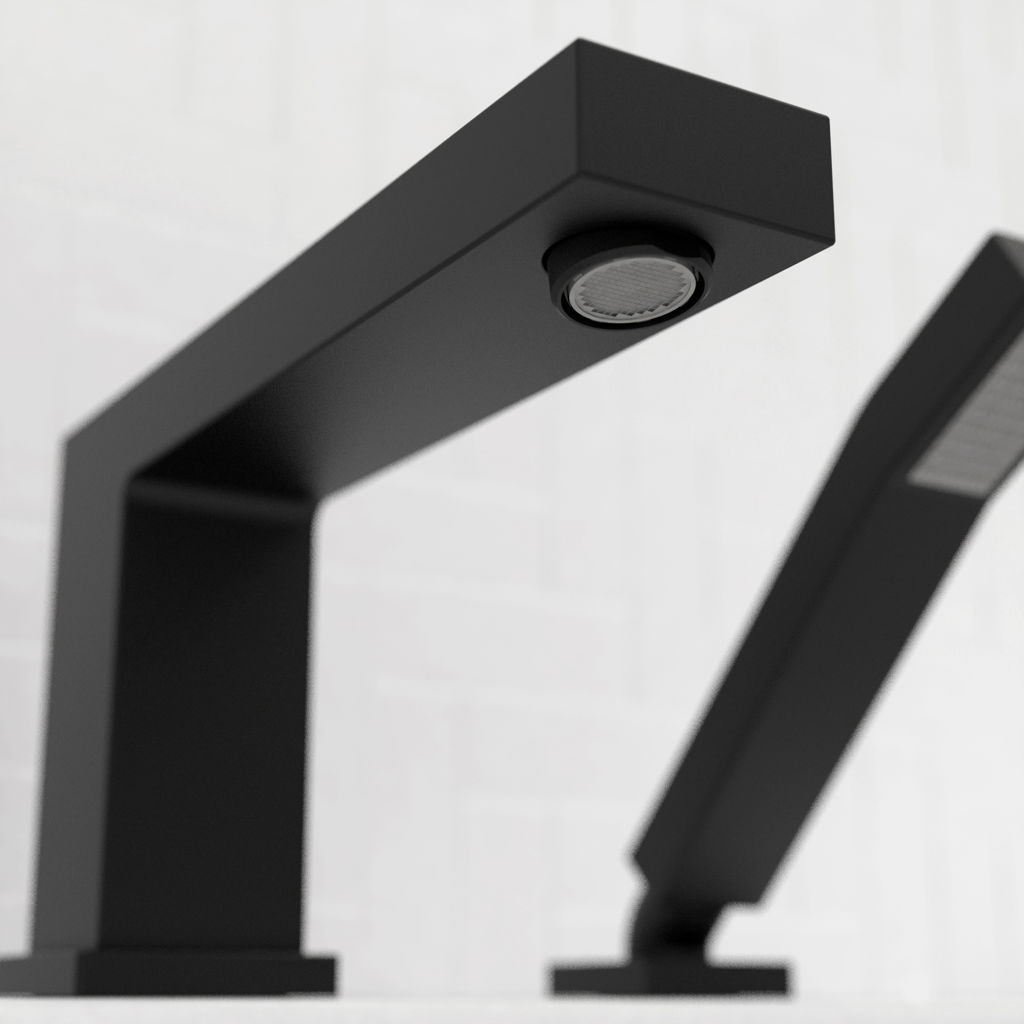 Quadrato roman bathtub fill and hand shower, an angular and square collection that blends perfectly with modern and elegant décor.