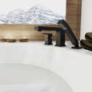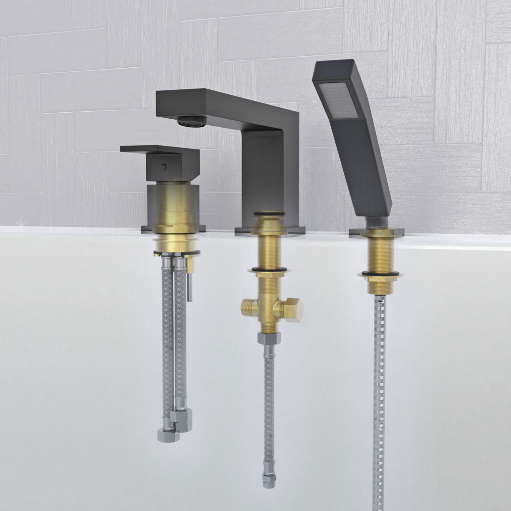 • Wide spread, 8 to 14" c/c installation bathtub faucet with built in diverter and hand shower.