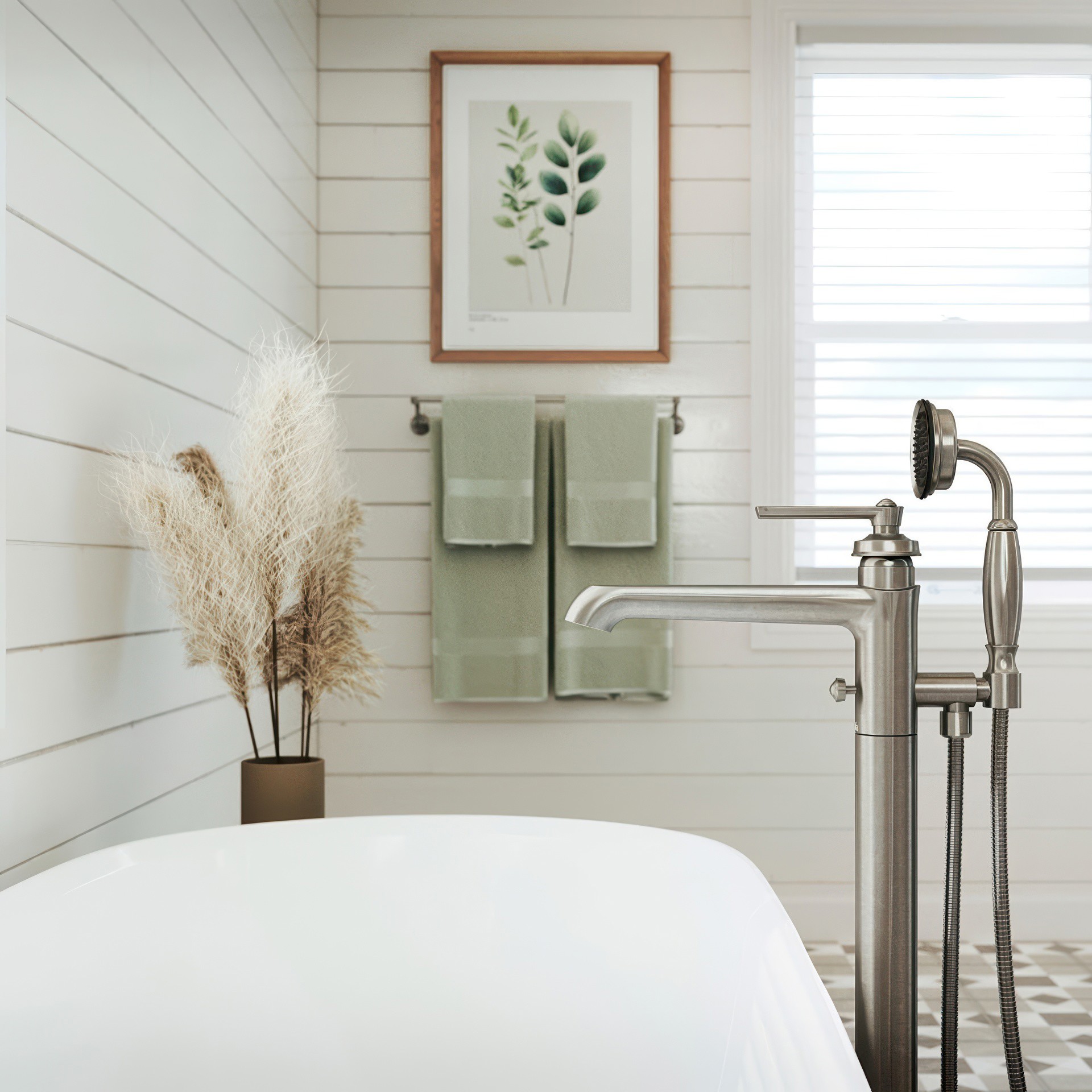 Rustik Bath Floor Faucet with Hand Shower - Pure nickel PVS