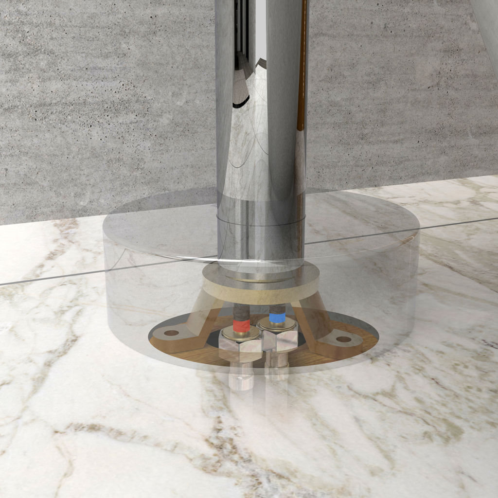 • Ceramic cartridge for long lasting flow control and 1/2" NPT connections with flexible stainless steel braided connectors.