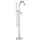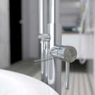 • 33" Height, floor mount, diverter style bathtub faucet with complete rough in and trim components.