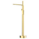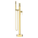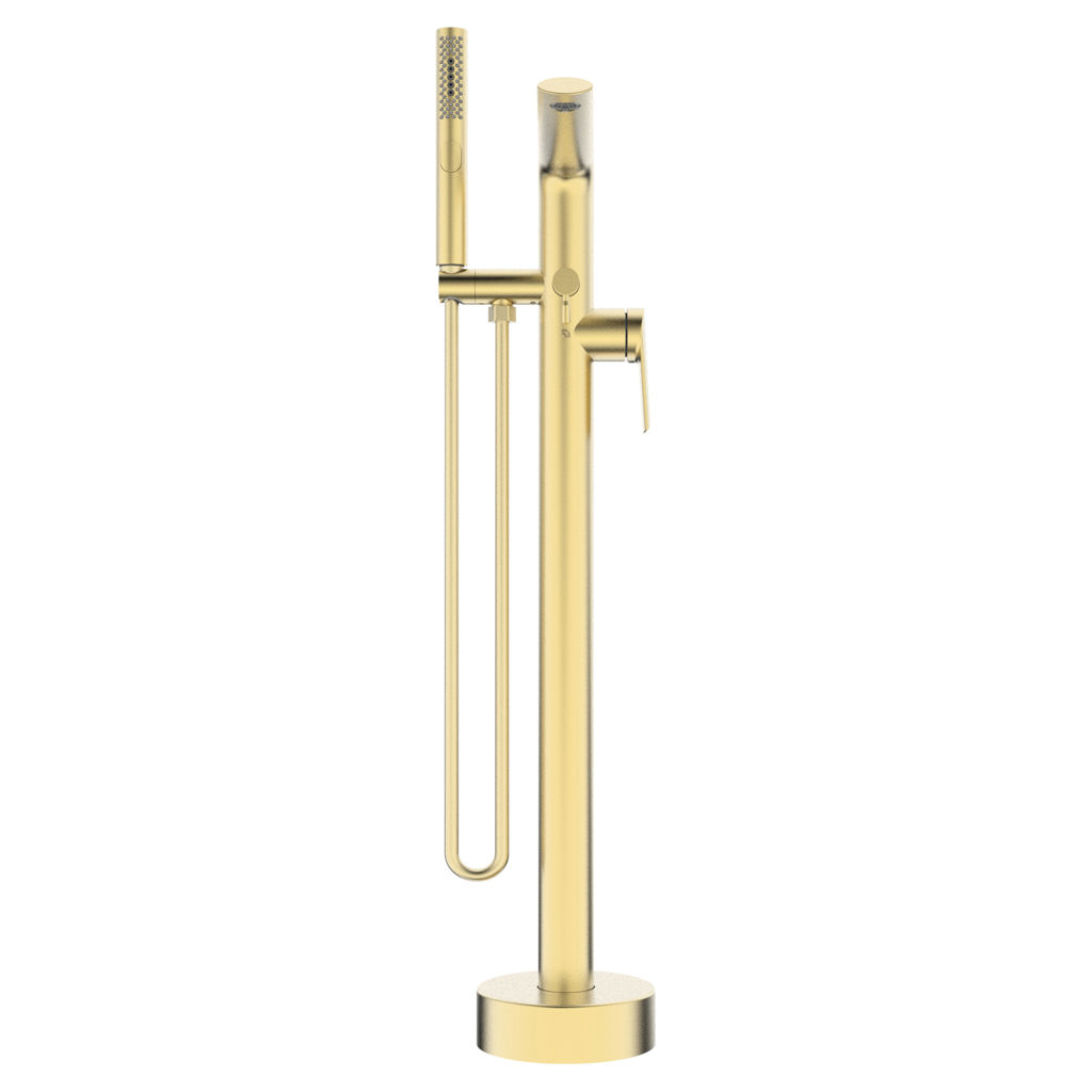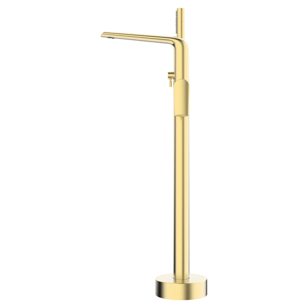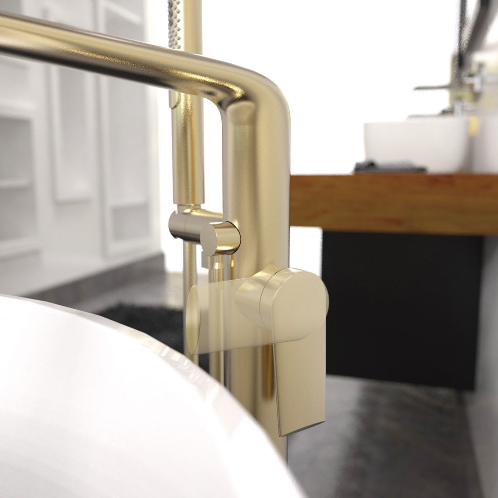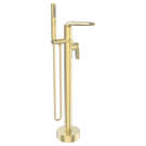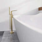 Its oval touch soften the angles of the give it a harmonious style to the floor mount bathtub filler with 2 way diverter and hand shower in matte gold finish.