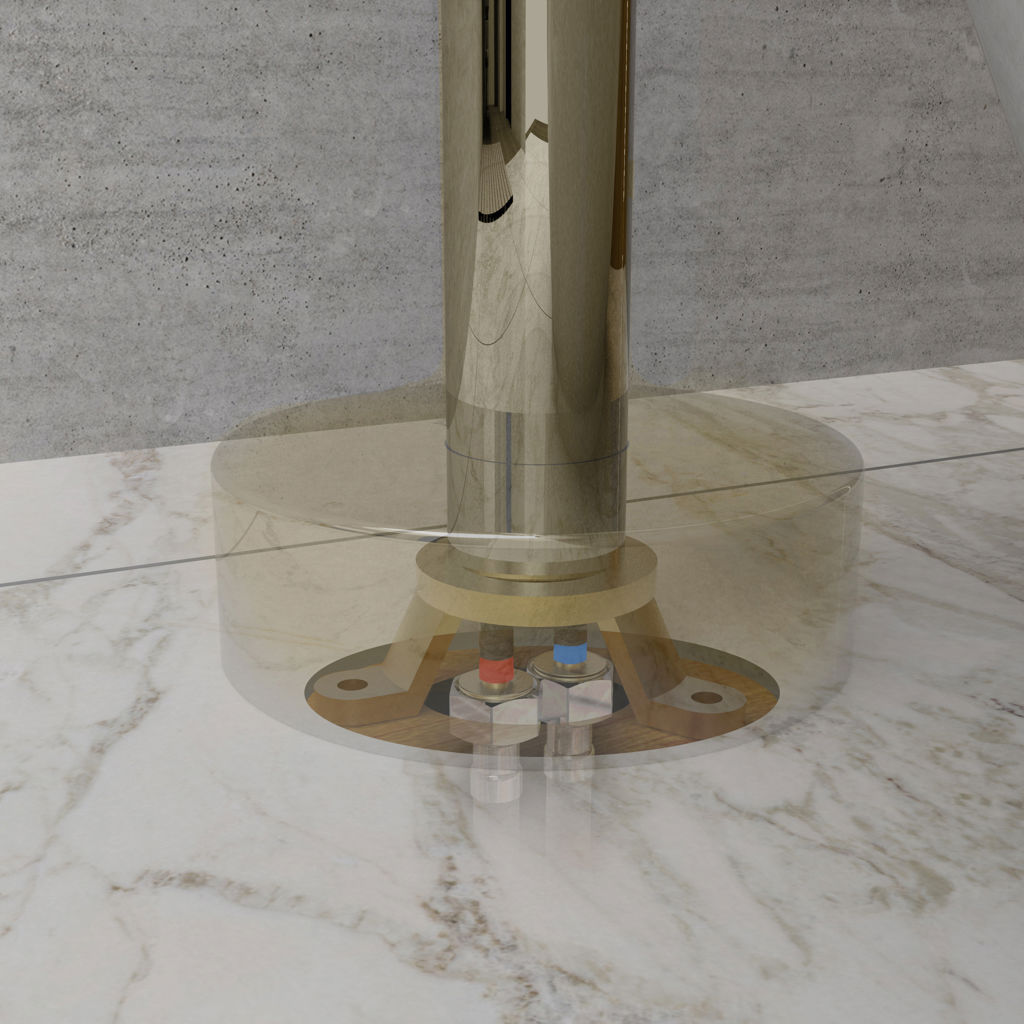 • 35" Height, floor mount, diverter style bathtub faucet with complete rough in and trim components.