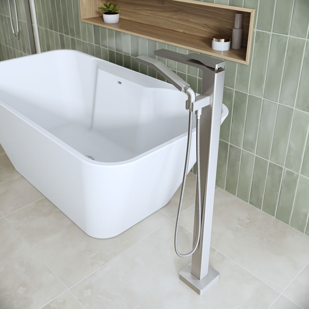 Kareo Floor-Mount Bathtub Faucet with Hand Shower – Pure PVS Nickel Kalia BF1980-125