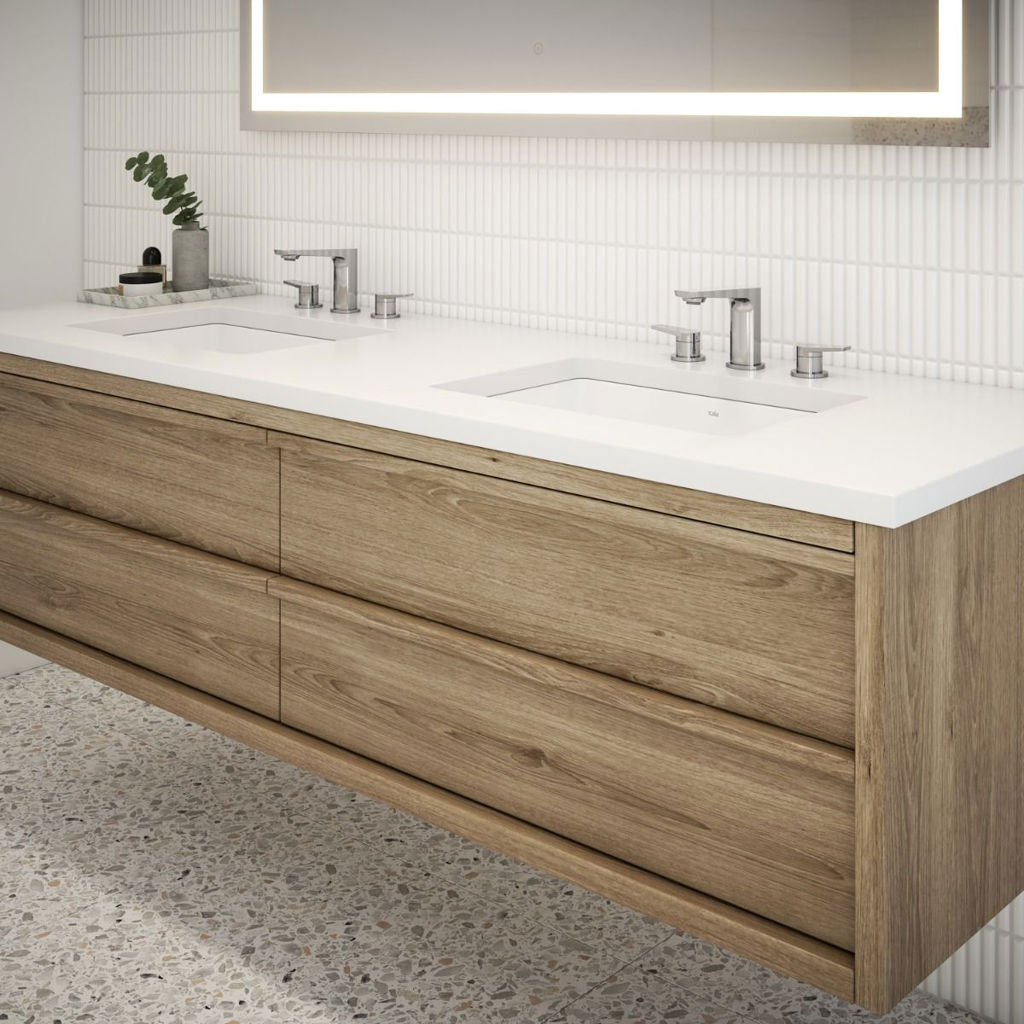 Bring style and practicality to your bathroom with the Moroka 8" c.c. faucet with pop-up drain and overflow from Kalia. Its smooth, streamlined, and contemporary silhouette integrates perfectly into modern décors. Built from solid brass, it promises strength and durability, all while showcasing a subtle, timeless aesthetic. A thoughtfully designed style, ready to elevate your vanity space.