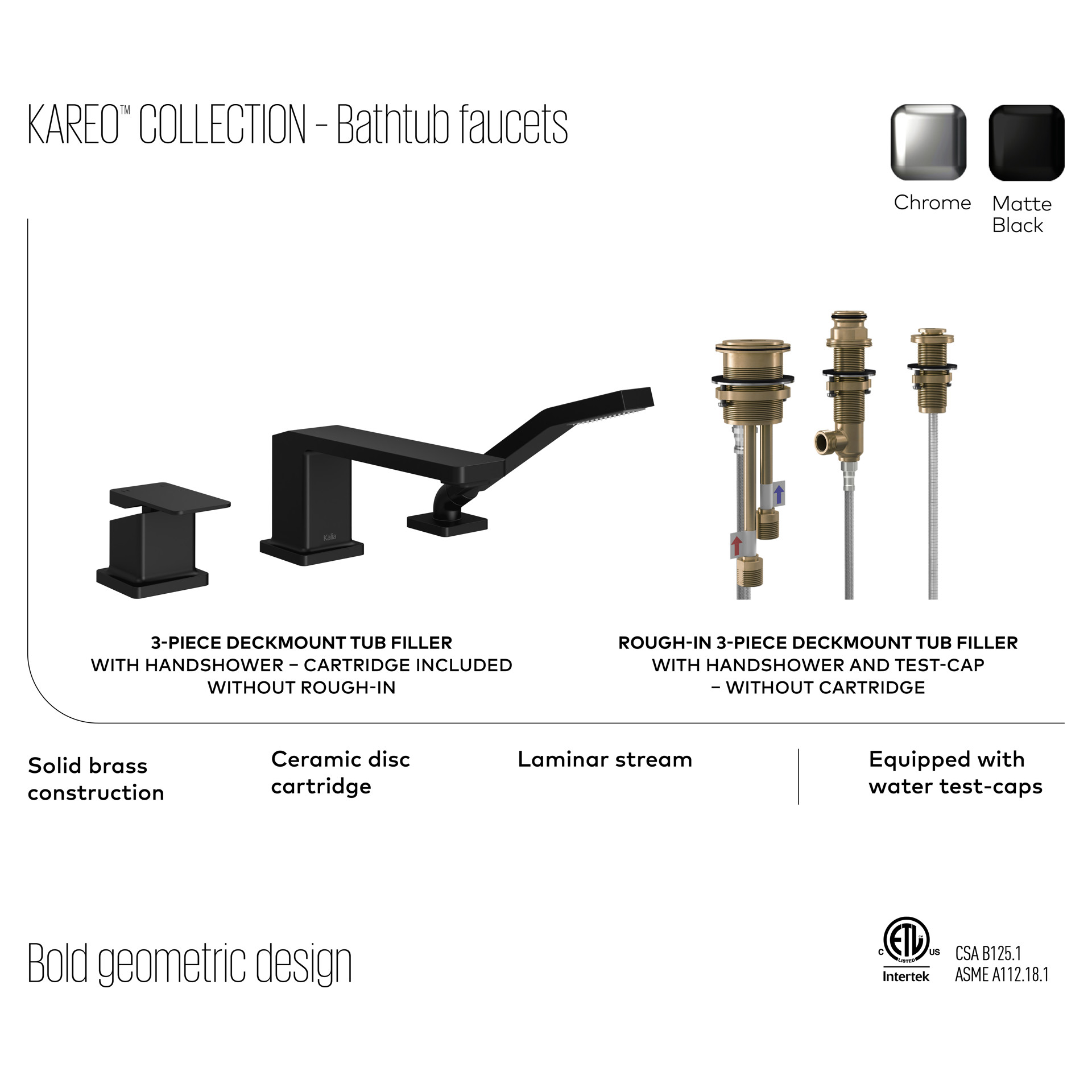 Kareo 3-pc Bathtub Faucet with Handshower - Matte Black