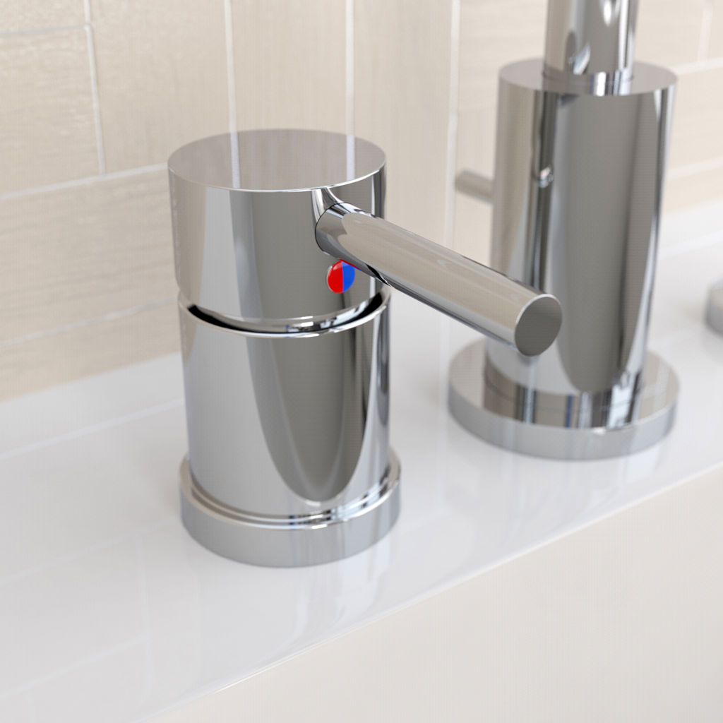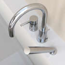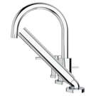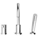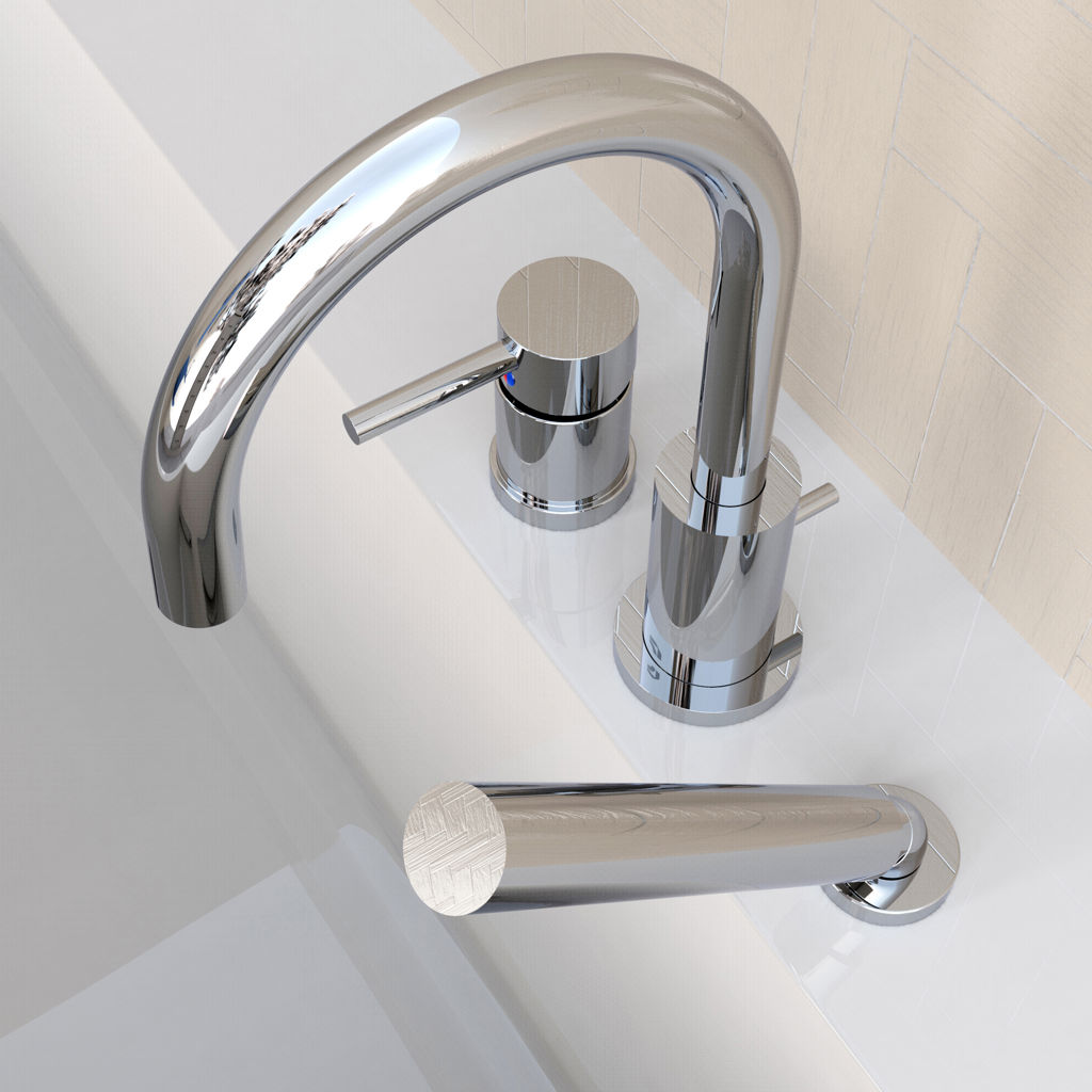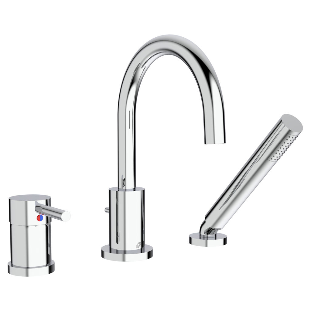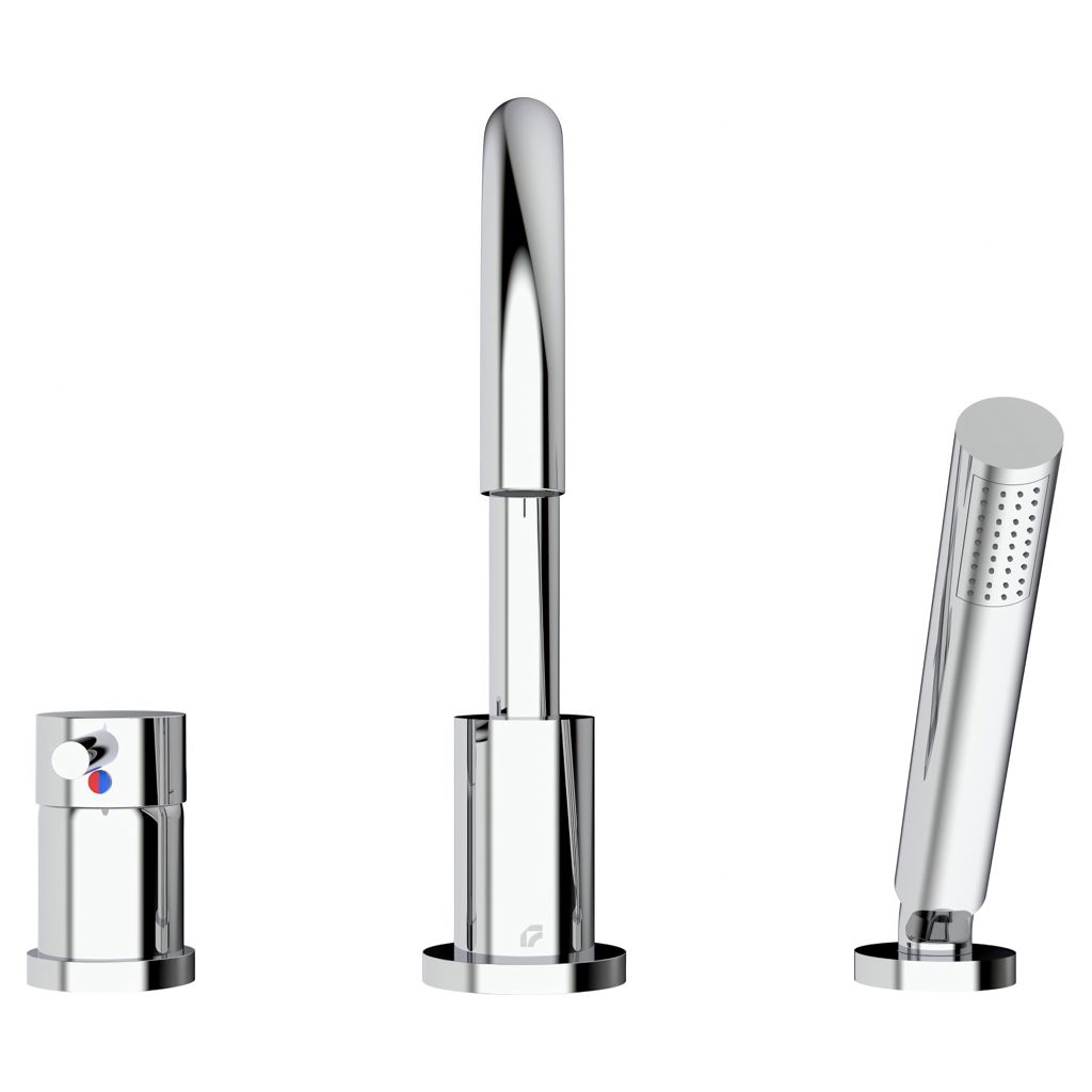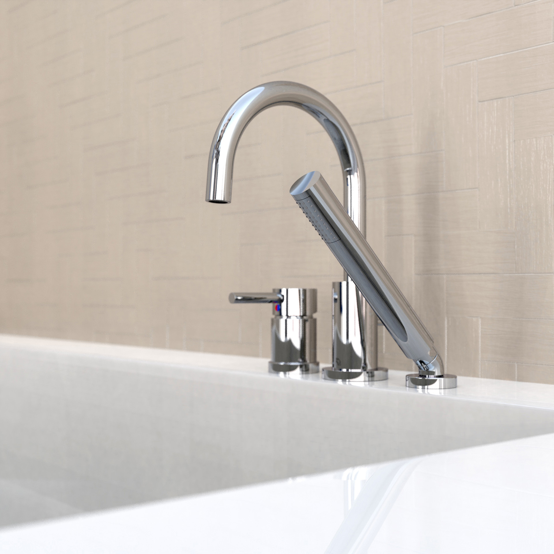 • Round, cylindrical arch tub spout, with complementary handle and spray style hand shower.