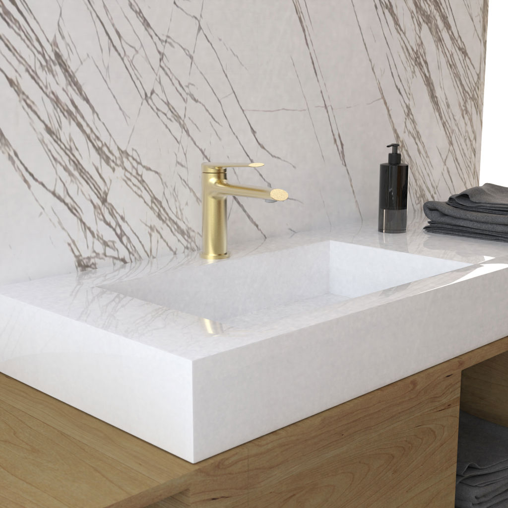 Opalia bathroom faucets features slim and elegant handles that offer a delicate look, while the tapered and elongated spout brings character to the product.