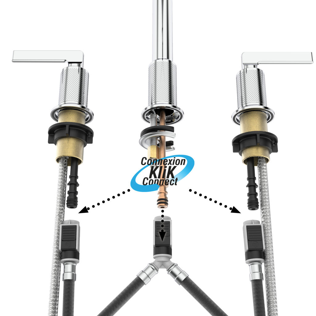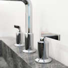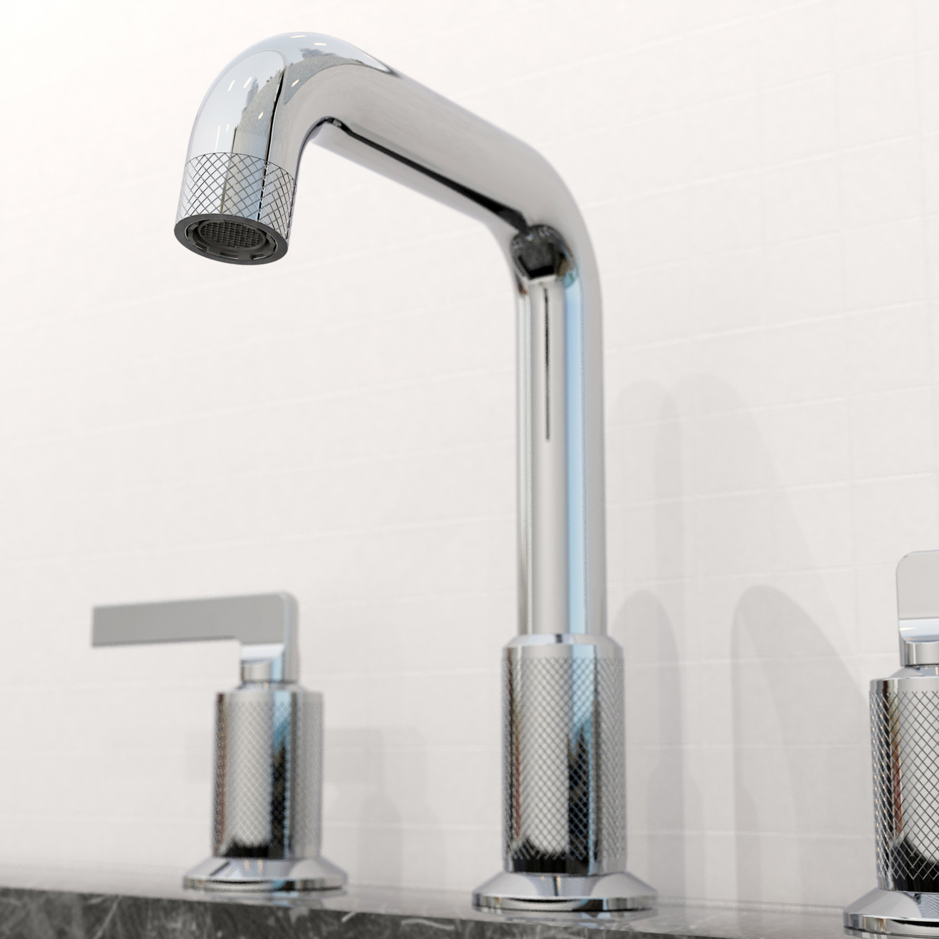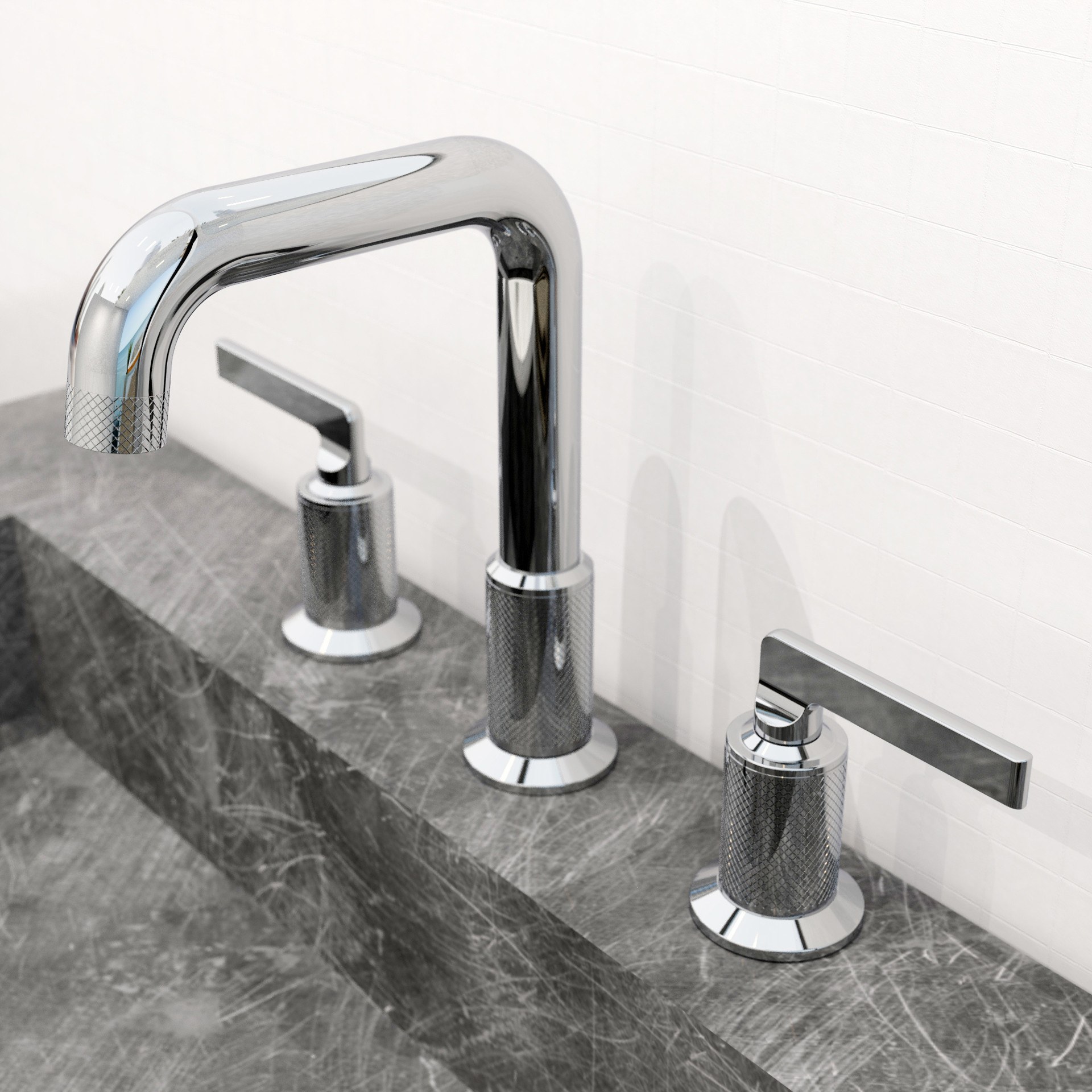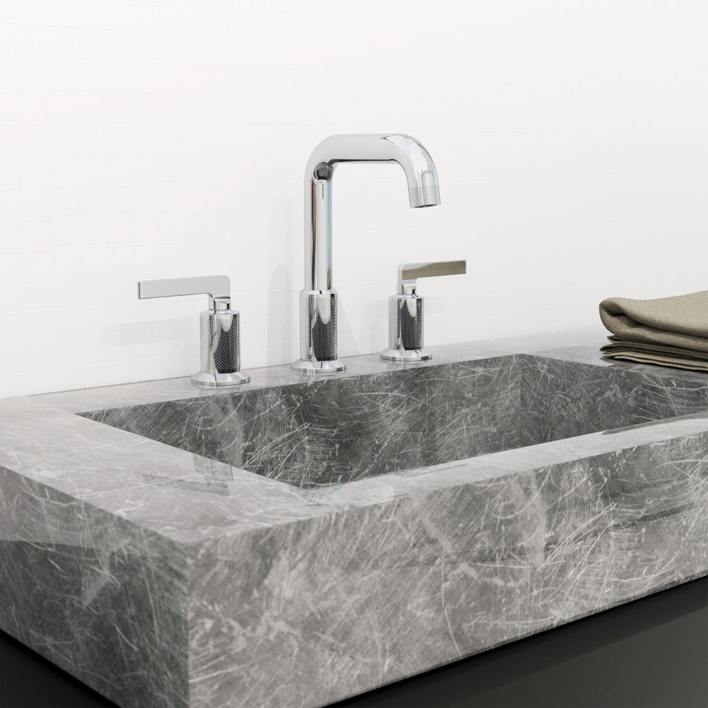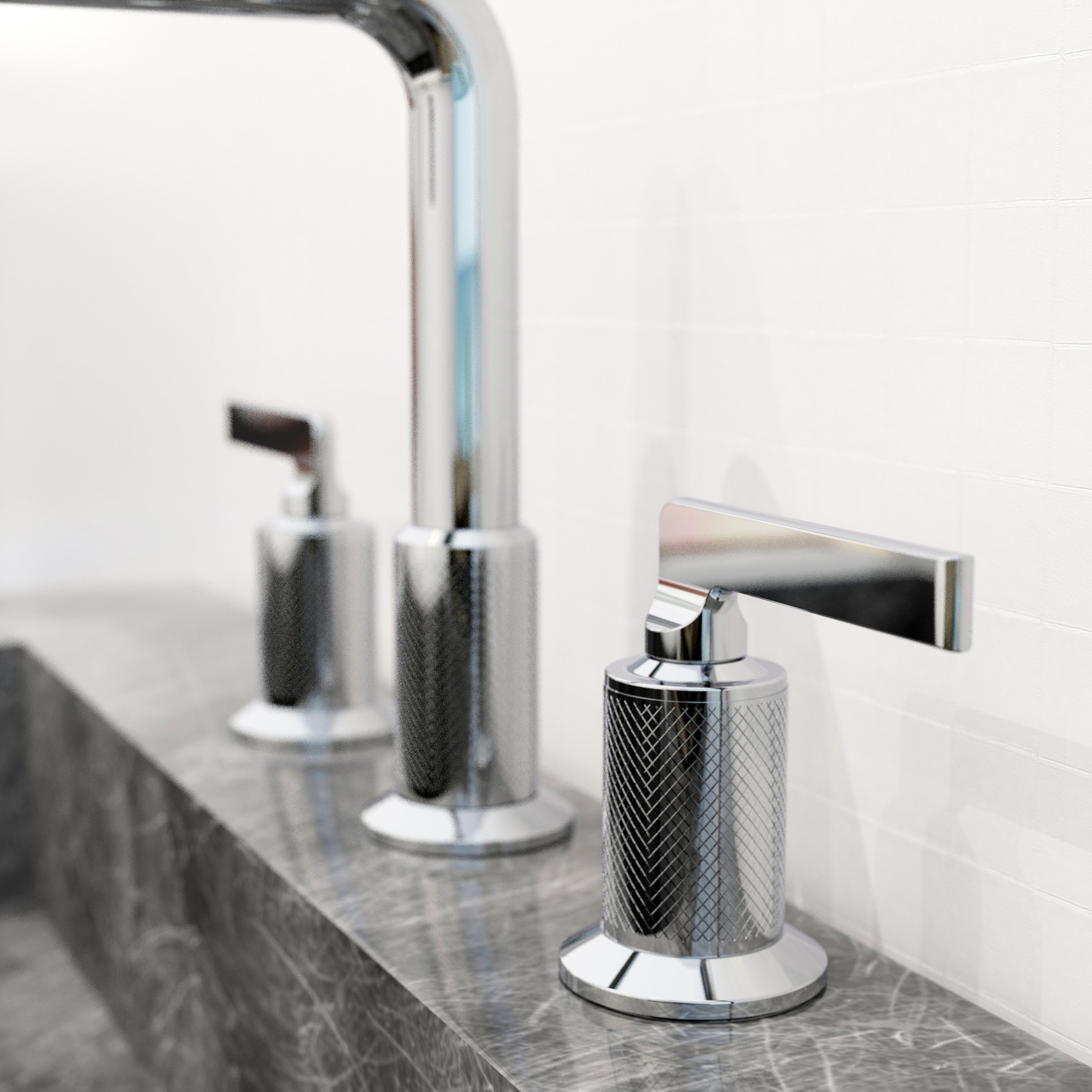 Its geometric lines end with finesse thanks to well-studied curves, creating the perfect industrial faucet with knurled accents.
