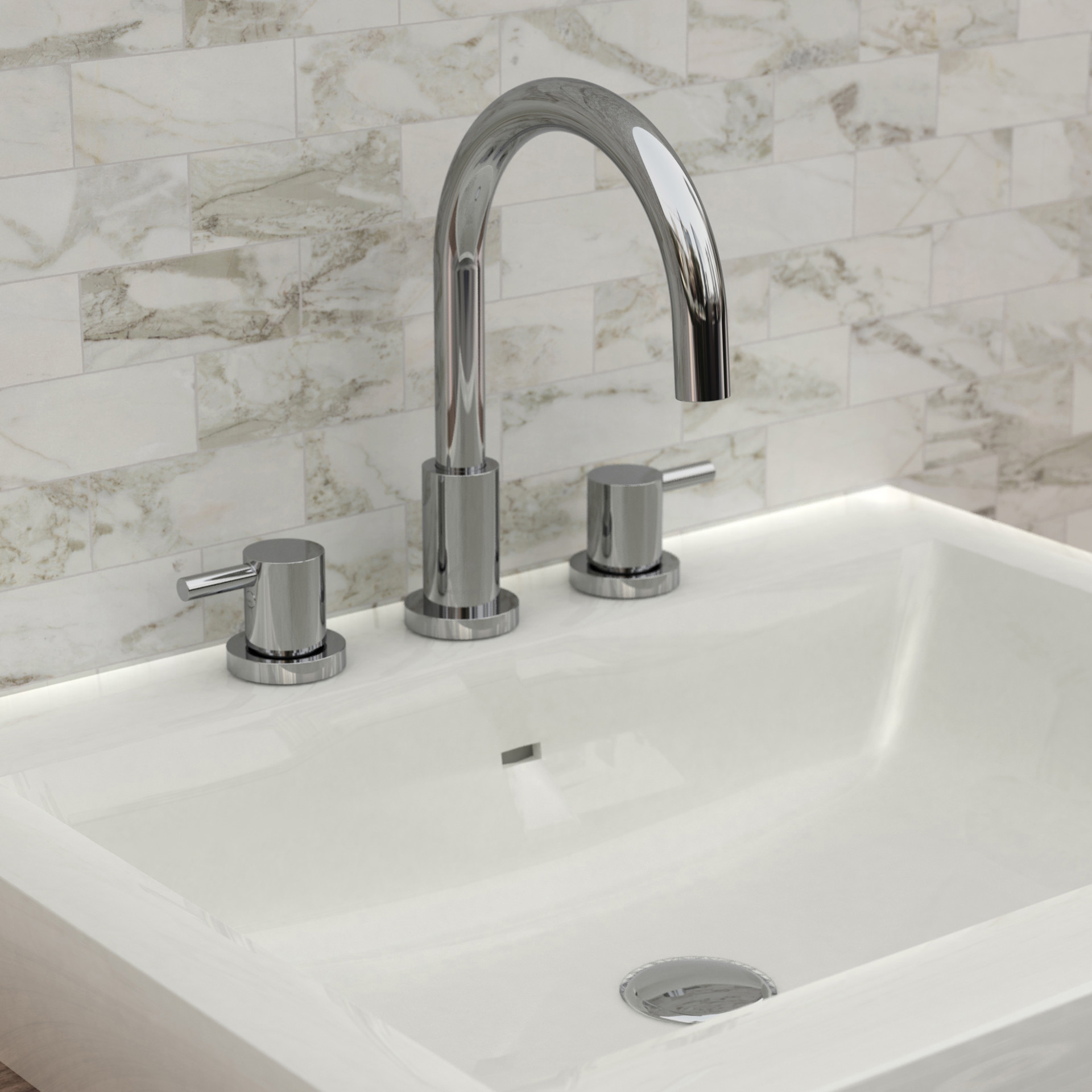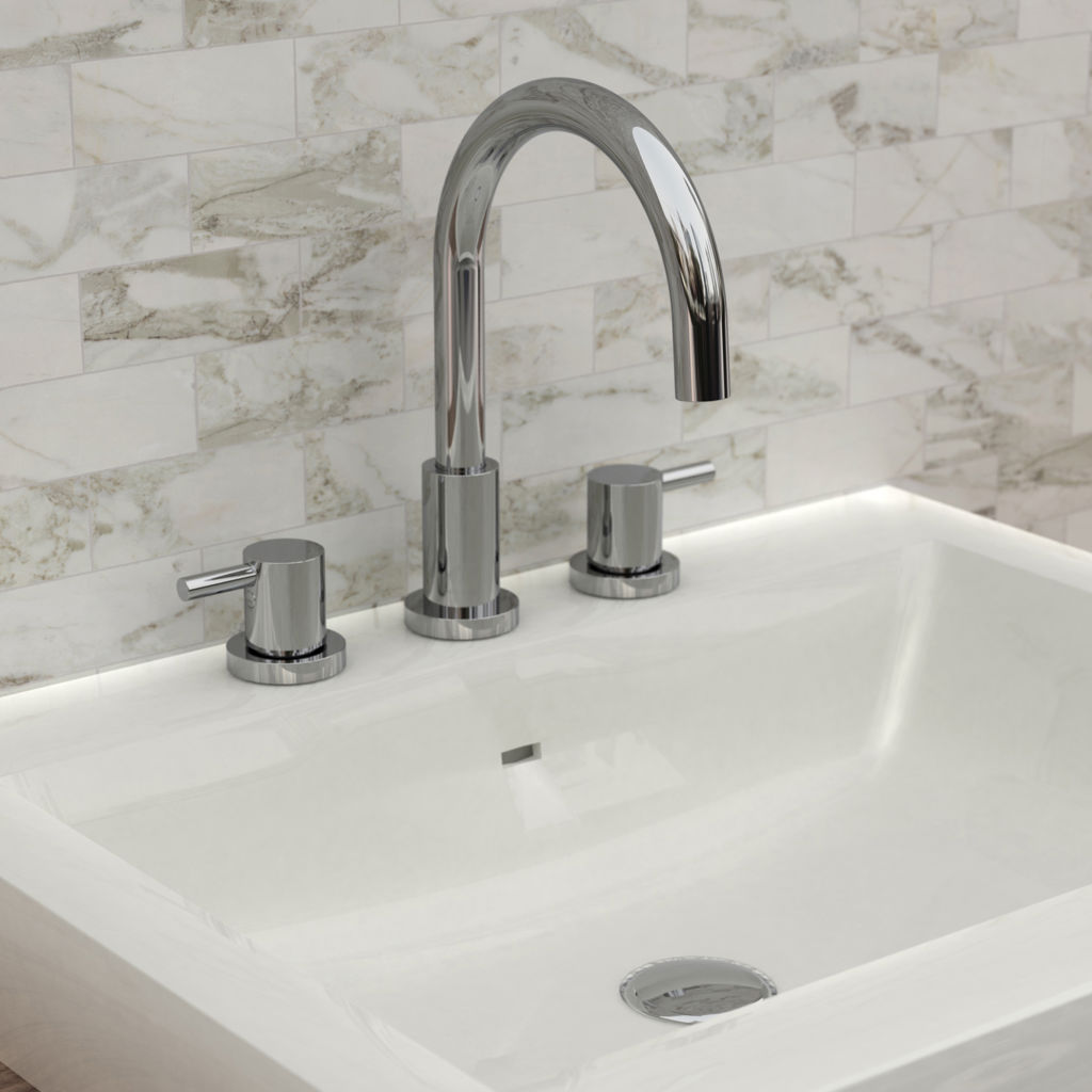 The Delphi lavatory faucet is available for single hole, wide spread and centered installation in chrome and matte gold finishes. Including Presto pop up drain.