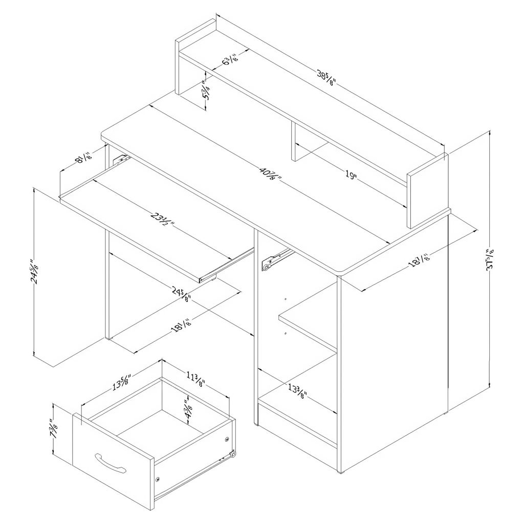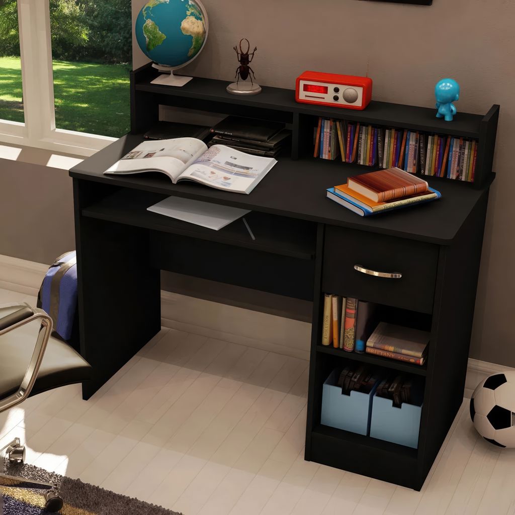 Besoin d'organisation pour votre bureau à domicile? Ce bureau de la collection Axess est parfait pour répondre à tous vos besoins de rangement! Son design compact inclut tout l'espace nécessaire pour un environnement de travail bien organisé grâce à sa huche, ses deux espaces de rangement ouverts et son tiroir. De plus, la surface de travail est parfaite pour déposer un ordinateur portable. Nous avons même ajouté une tirette pour déposer votre clavier et libérer davantage le dessus.