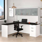 Bureau en L avec caisson et huche munie de portes en verre - Pro-Concept Bestar 110887-17