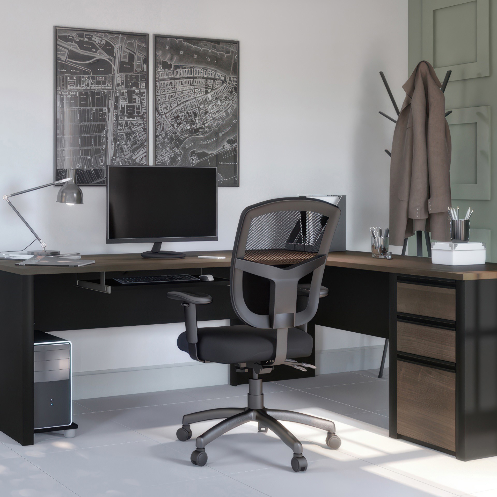Bureau de travail en L avec caisson 72L