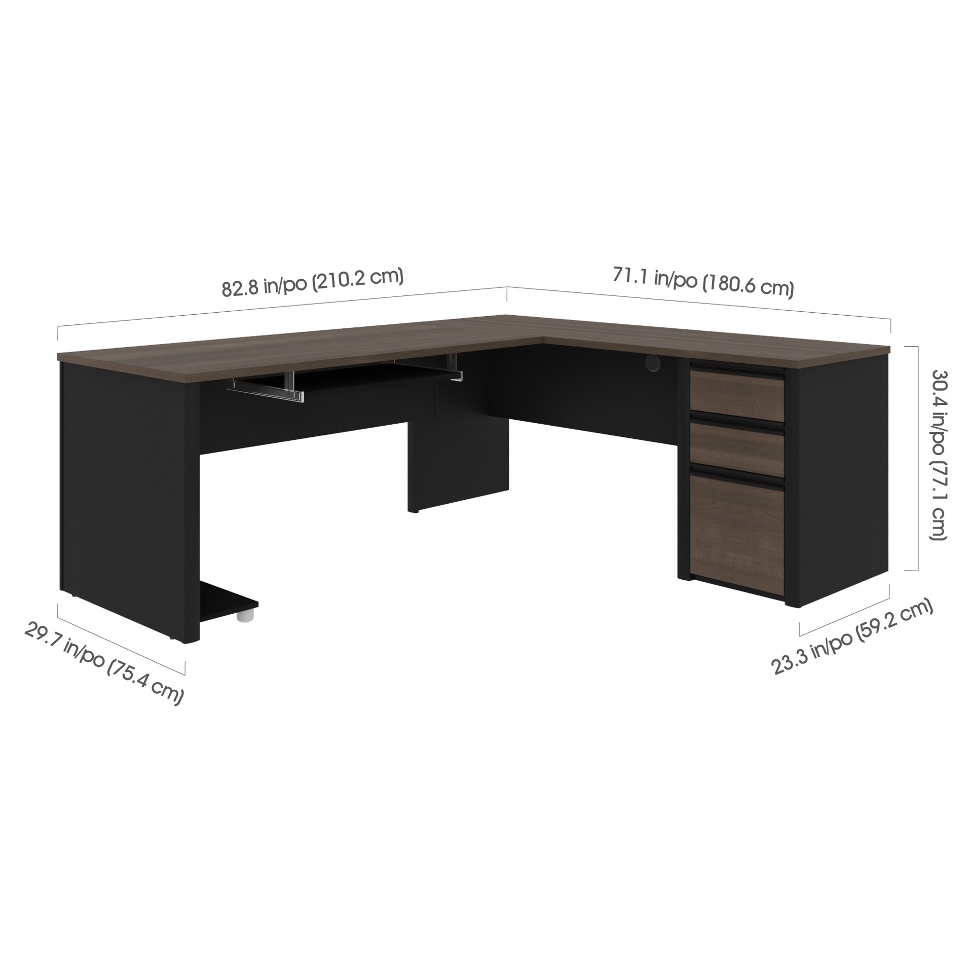 Bureau de travail en L avec caisson 72L Bestar 93880-000052