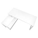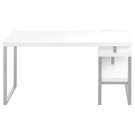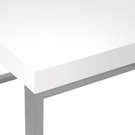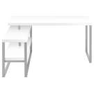 . La finition est en stratifié blanc avec une base en métal argenté.