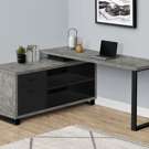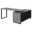 Finition de couleur faux béton gris. Il a deux tiroirs de rangement et deux étagères ouvertes noirs pour un design moderne et minimaliste.