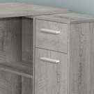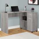 Fini sur tous les côtés dans un stratifié faux bois gris industriel, ce bureau est destiné à être placé dans un coin, mais peut être placé n'importe où dans la chambre d'un enfant ou un dortoir.