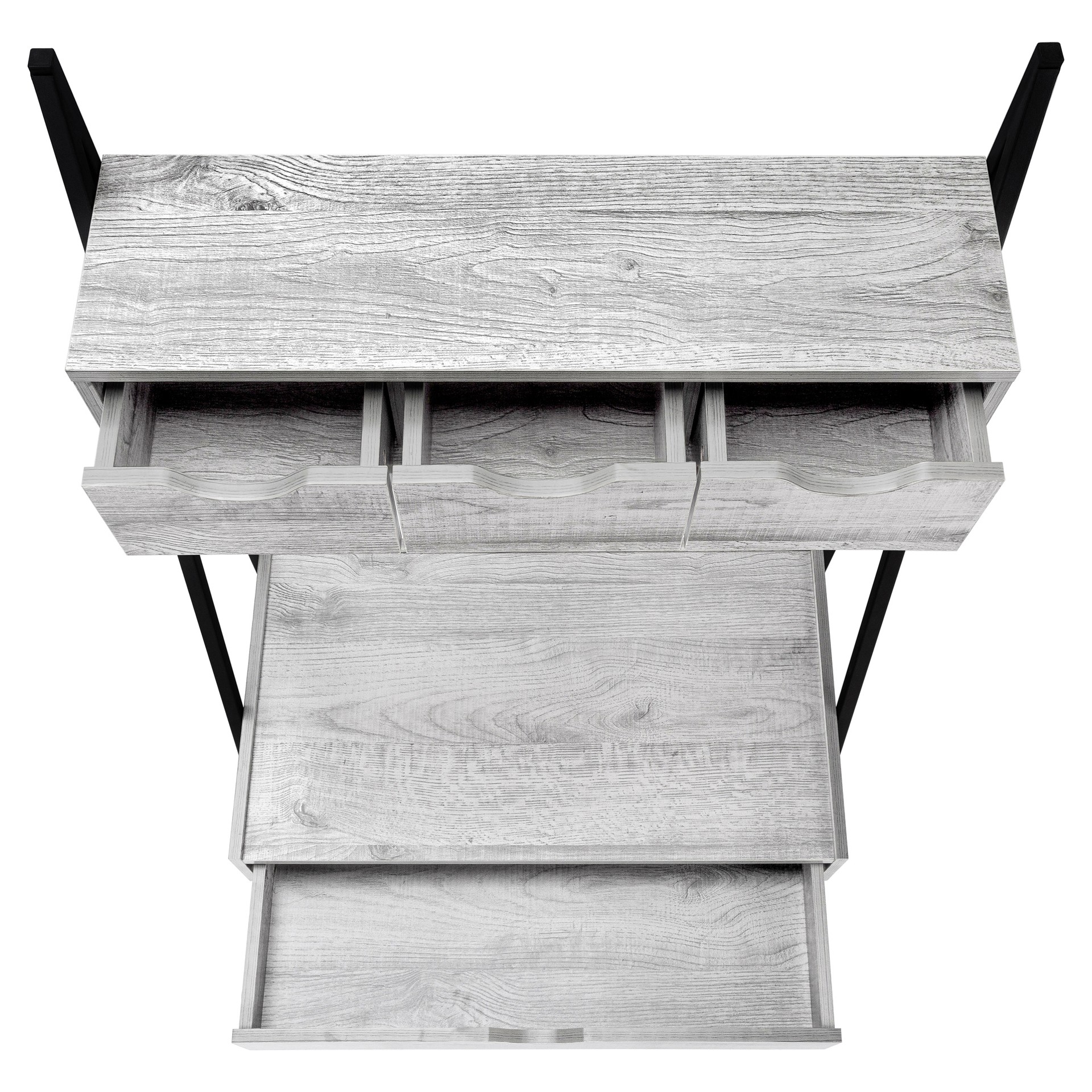 Compact à souhait, ce bureau d'ordinateur est la solution parfaite pour un appartement qui n'était jamais censé servir de bureau à la maison. Son design unique stylé, sa tablette parfaite pour les plantes retombantes et son tiroir pouvant dissimuler un ordinateur portable lui permettent de se fondre dans le décor en dehors des heures de bureau.