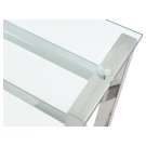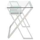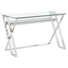 D'un look moderne épuré, ce bureau d'ordinateur allie le fini chromé d'une base en métal poli et la transparence du verre trempé. Il est sa place dans un bureau au dépouillement étudié ou dans un décor industriel chic.