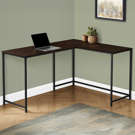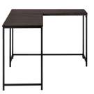 Ce bureau d'ordinateur en forme de L est conçu pour être placé dans un coin afin de maximiser l'espace dans un bureau à domicile.