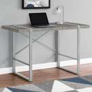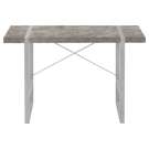 Cet élégant bureau d'ordinateur d'inspiration industrielle pourrait facilement passer pour une table d'appoint. Il comporte un dessus de bureau spacieux à panneaux épais fini en stratifié faux béton gris et des pieds en métal robustes dans une finition argentée coordonnée.